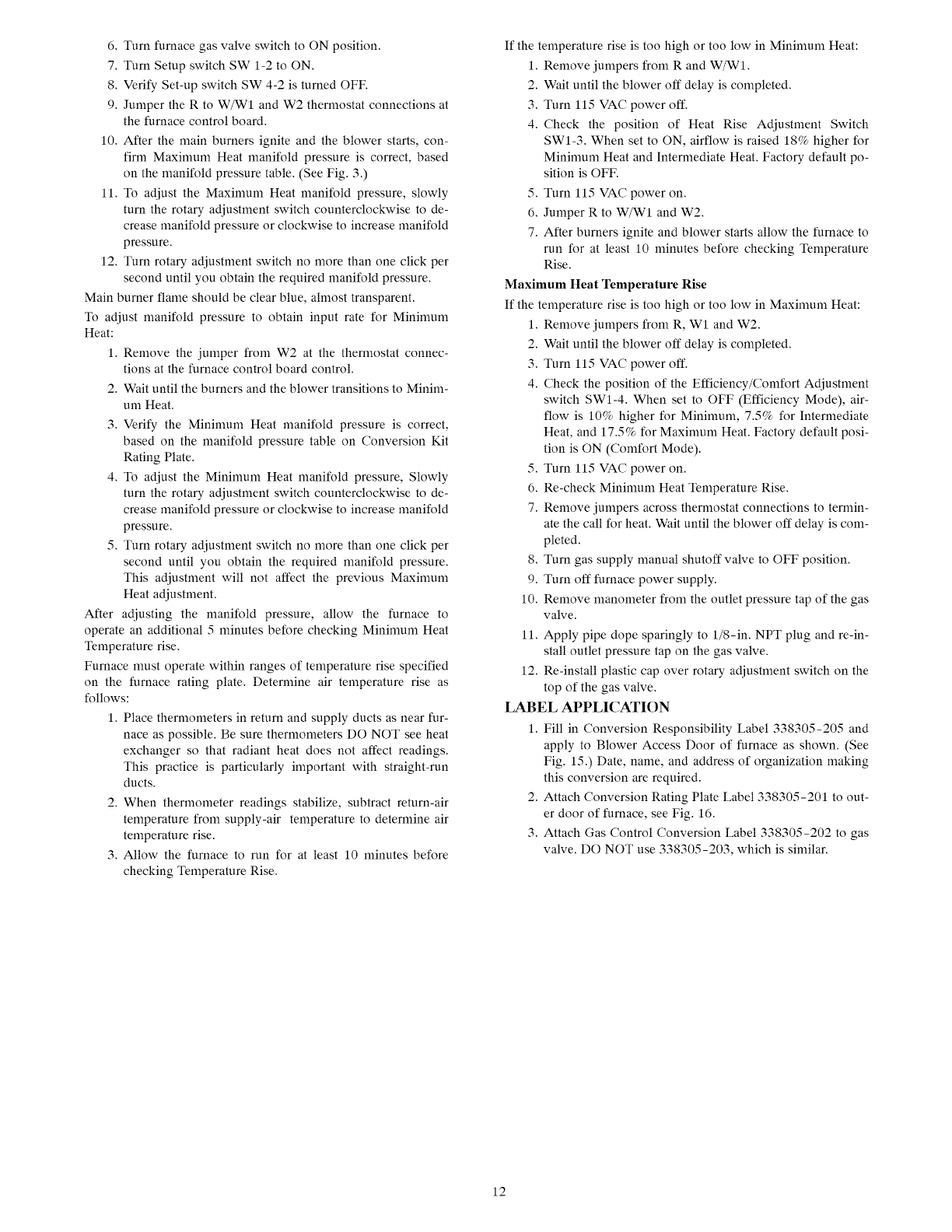 3. Apply Gas Control Conversion Label: For 2-stage J and