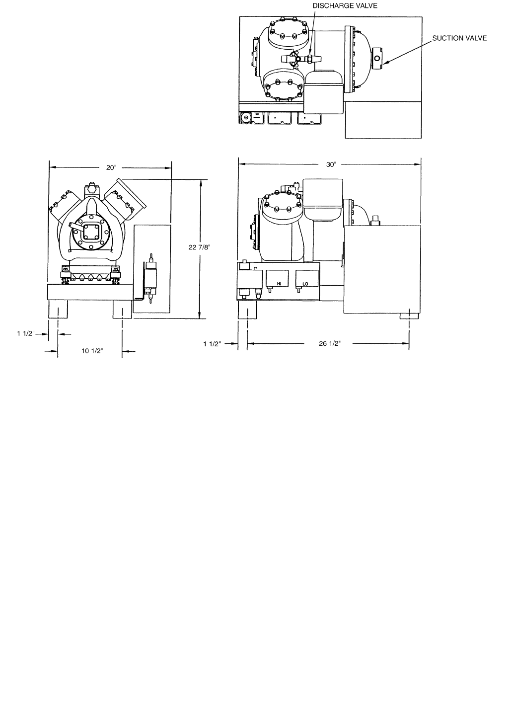 compressor. Place unit so suction and discharge valves can be