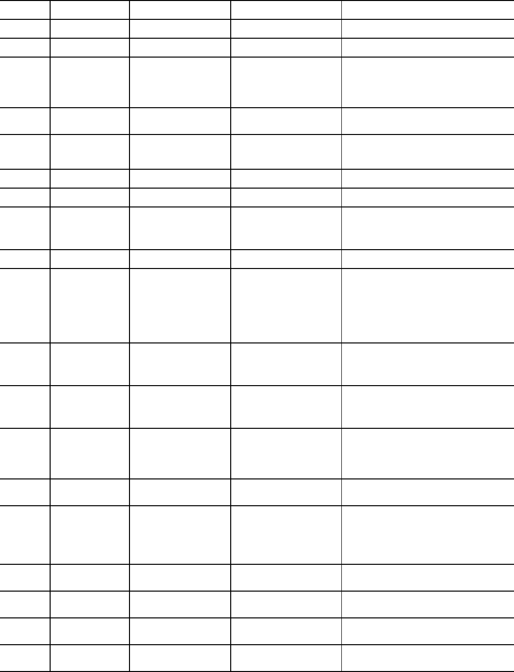 Table G — Network Points List (cont)