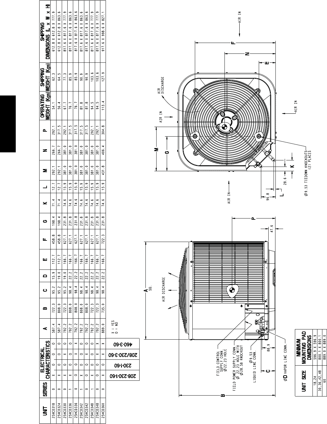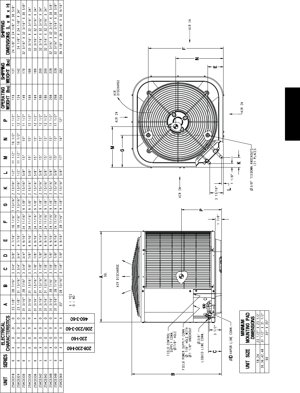 1. Intended for outdoor installation with free air inlet and outlet. Outdoor fan external static pressure available is less than 0.01--in. wc.