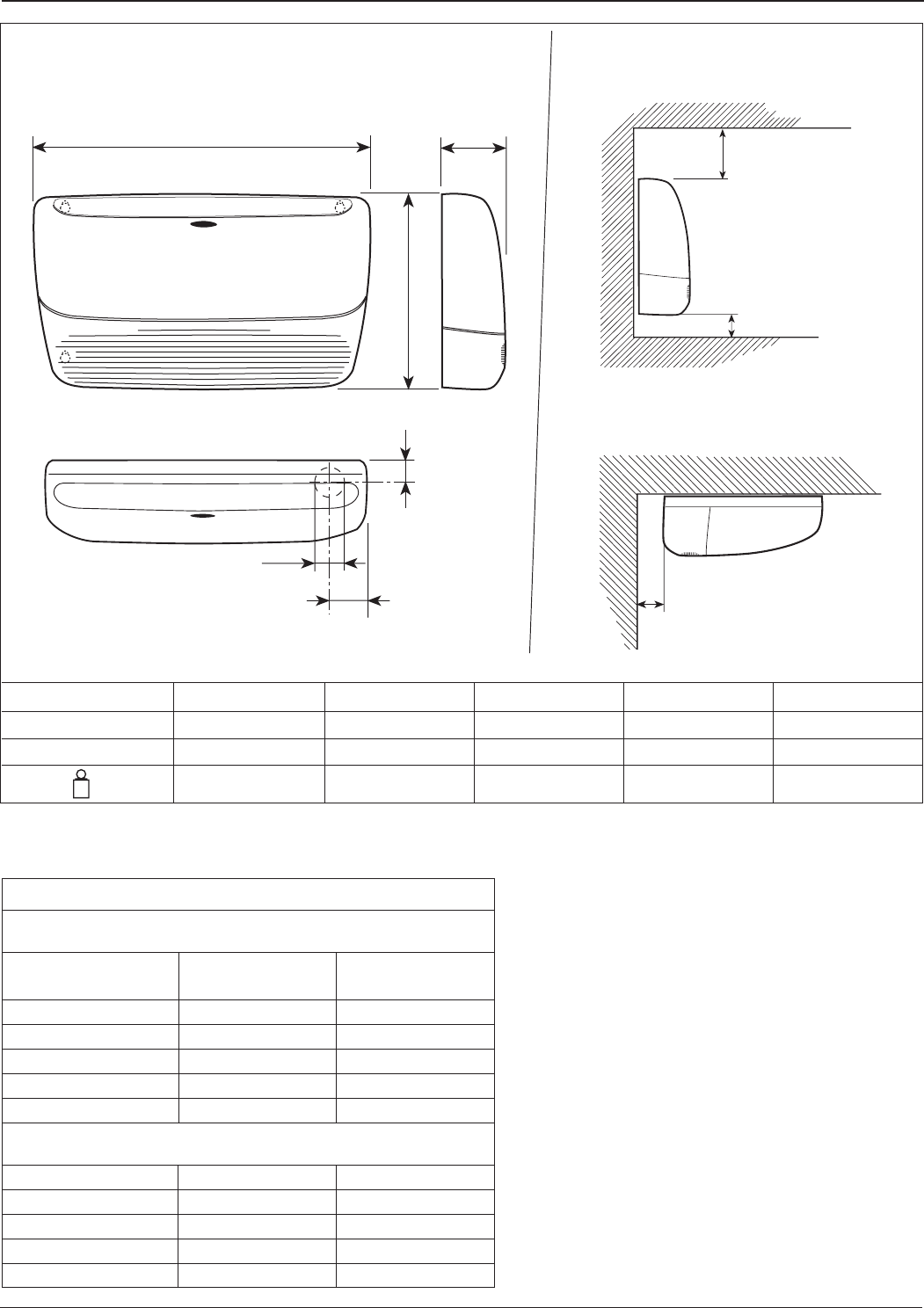 Dimensions and weights - Minimum clearances (mm)