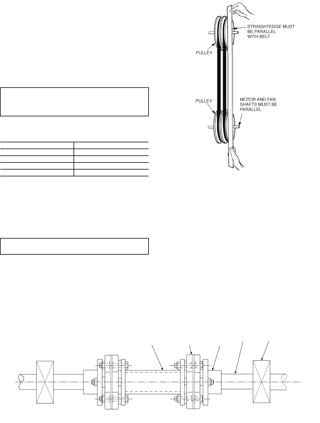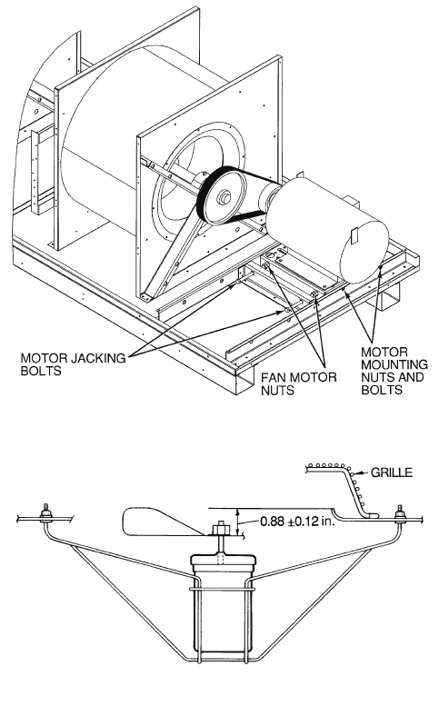 VERIFY THAT FAN SHEAVES ARE ALIGNED AND BELTS ARE PROPERLY TENSIONED