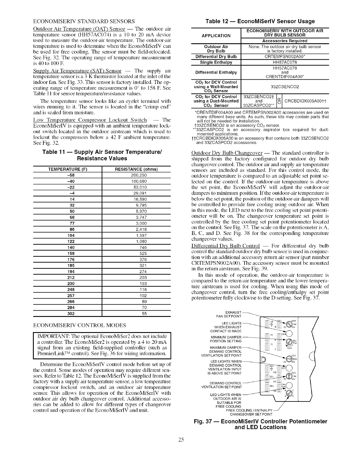 • ECONOMI$ERIV STANDARD SENSORS