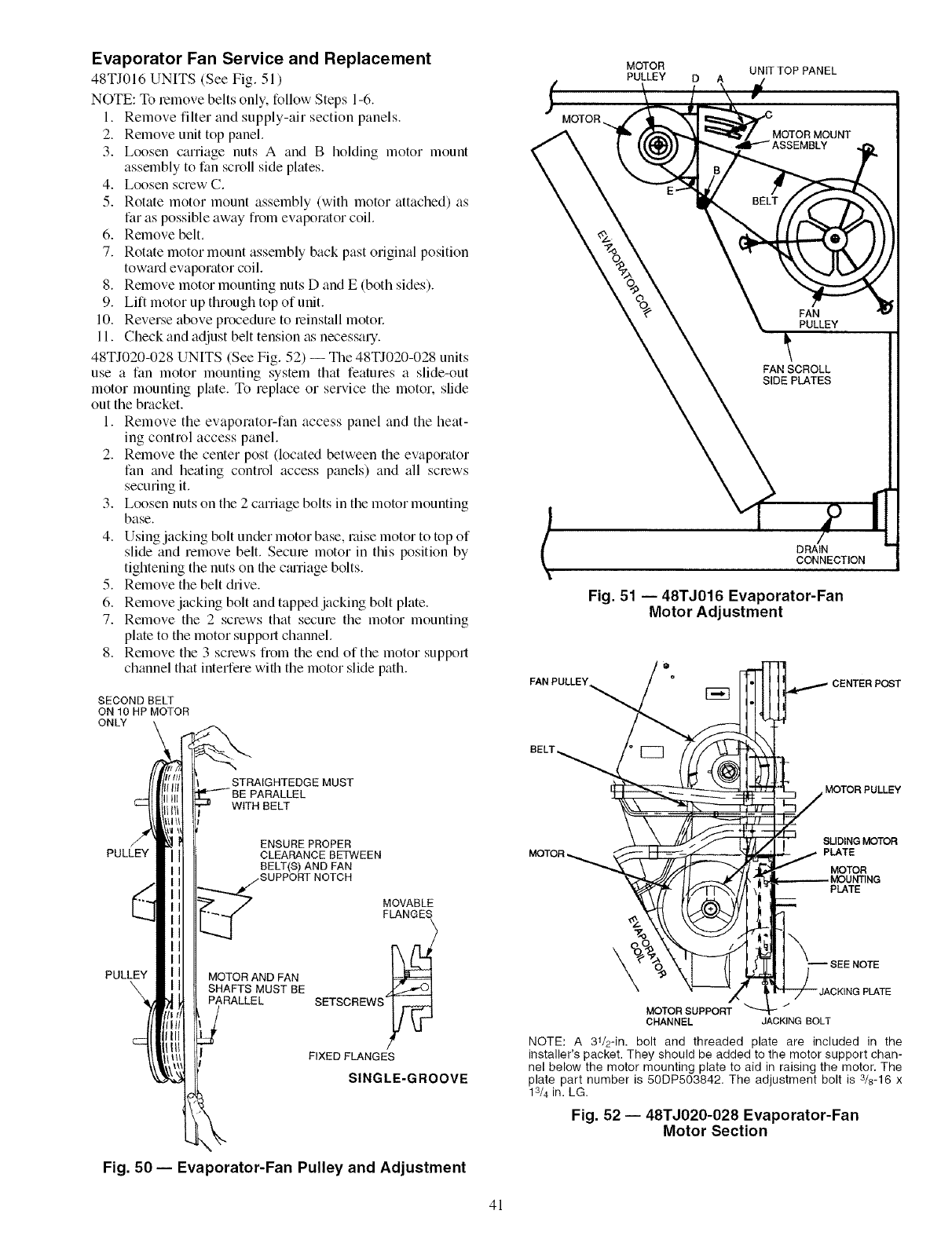[] VERIFY INSTALLATION OF INDOOR FAN MOTOR ADJUSTMENT BOLT AND PLATE (48TJ020-028 ONLY)