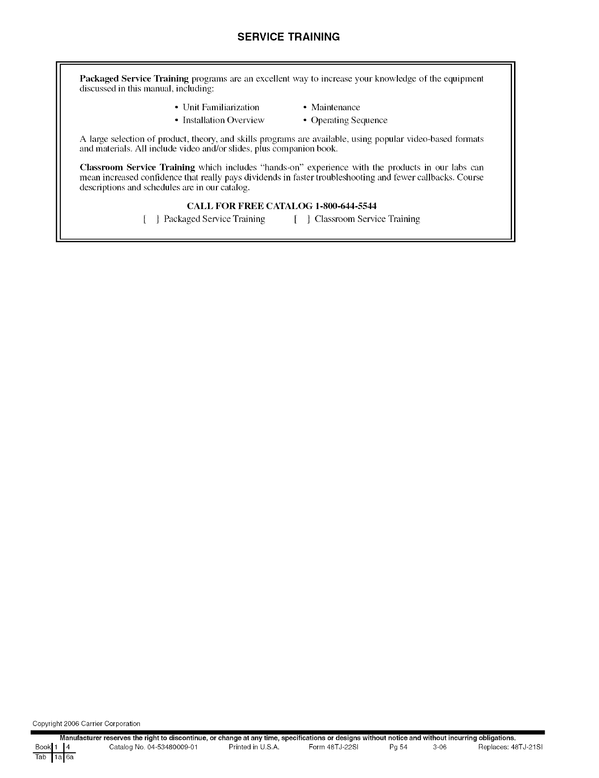 Catalog No. 04-53480009-01 Printed in U.S.A. Form 48TJ-22SI Pg 54 3-06 Replaces: 48TJ-21SI