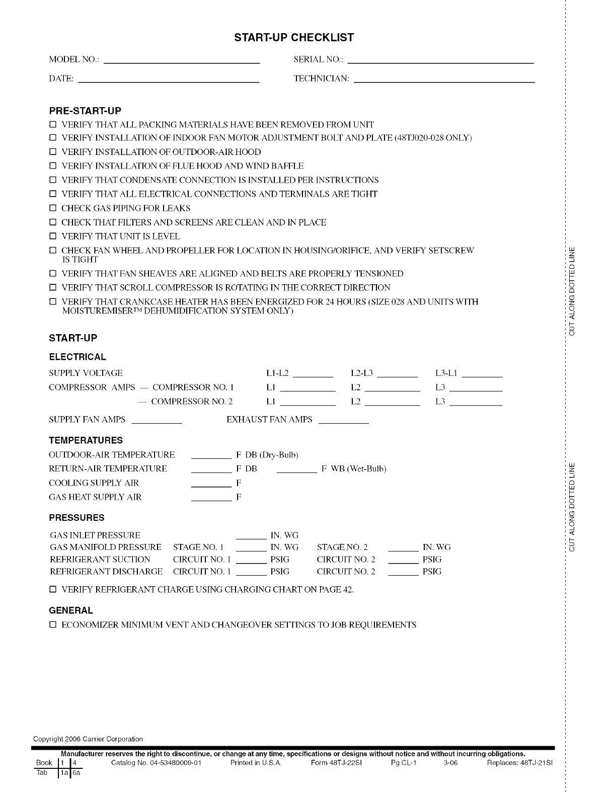 Book 1 14 Catalog No. 04-53480009-01 Printed in U.S.A. Form 48TJ-22SI Pg CL-1 3-06 Replaces: 48TJ-21Sl