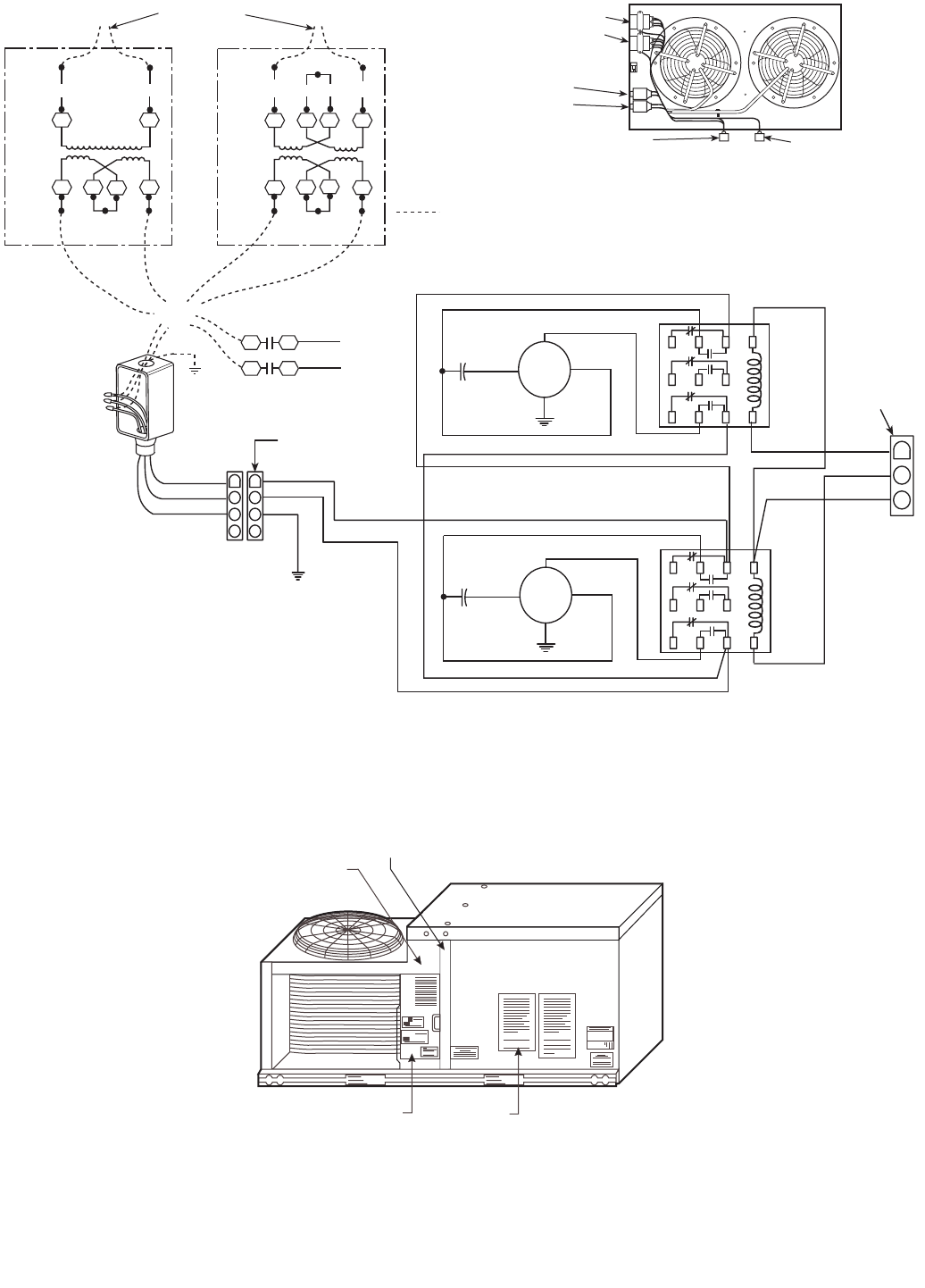 6. TRAN is wired for 230-v unit. If unit is to be run with 208-v power supply, disconnect BLK wire from 230-v tap