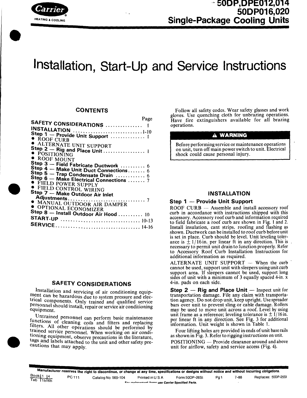 Carrier 50Dp Users Manual