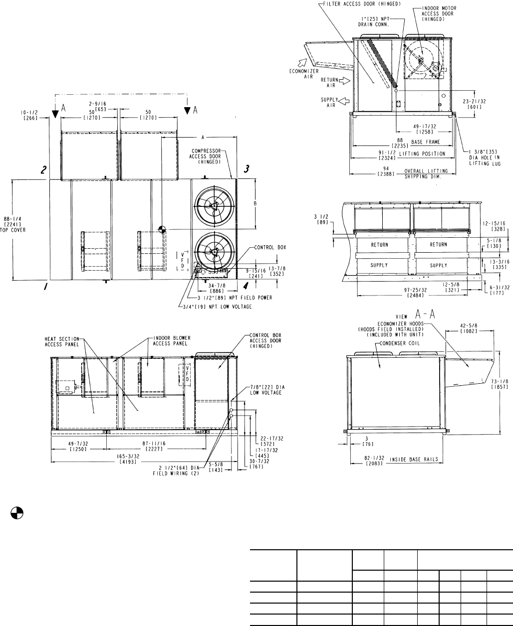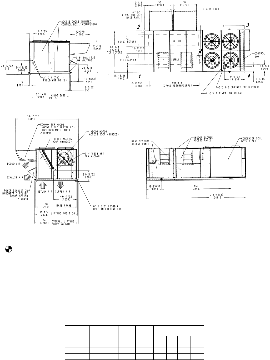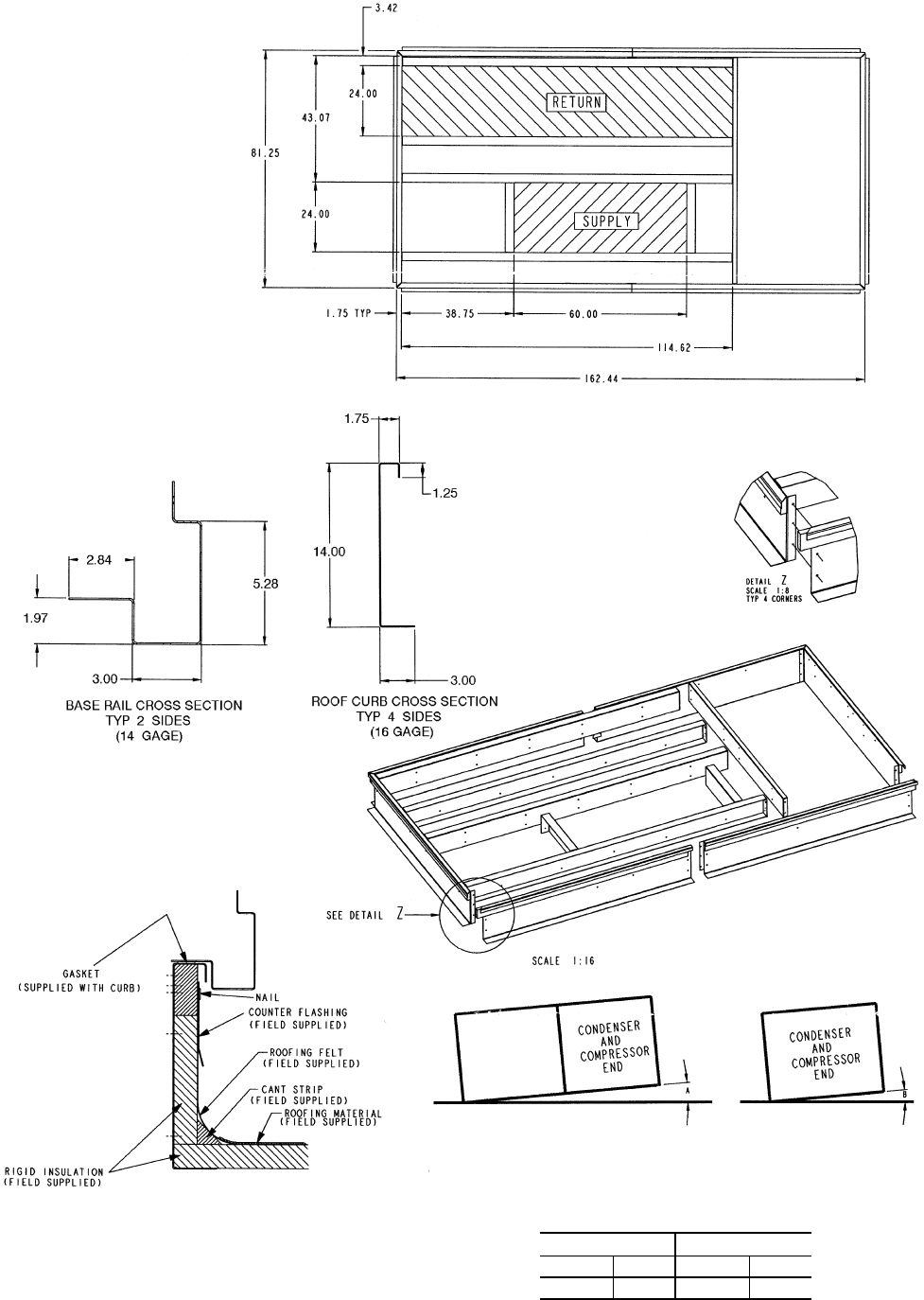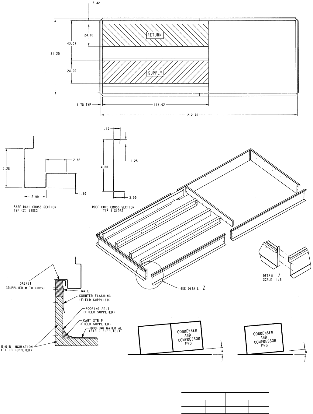 a roof curb or horizontal adapter are shown in Fig. 1 and 2.