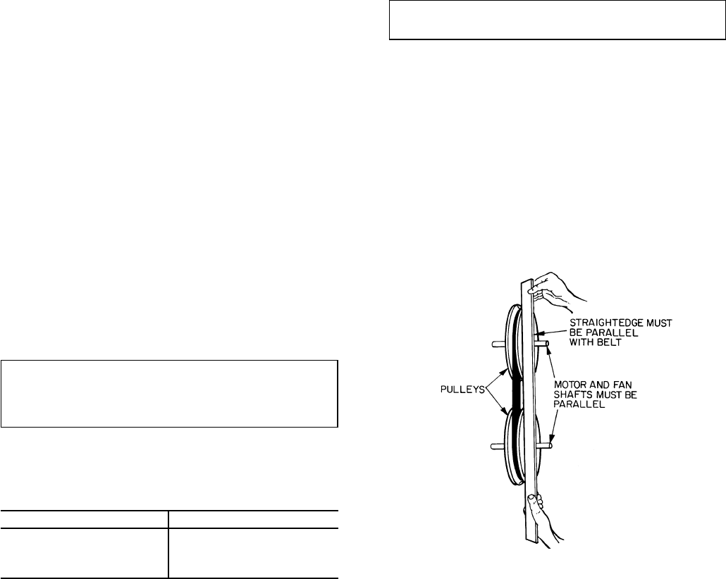 MVERIFY THAT FAN SHEAVES ARE ALIGNED AND BELTS ARE PROPERLY TENSIONED