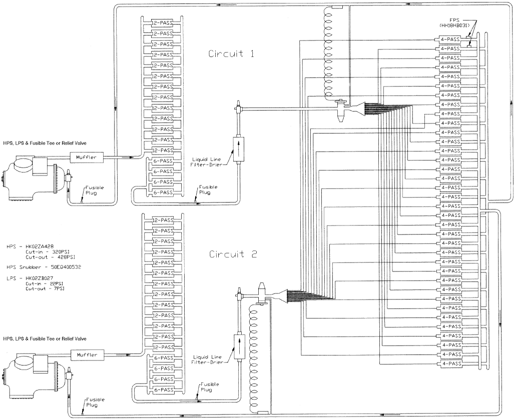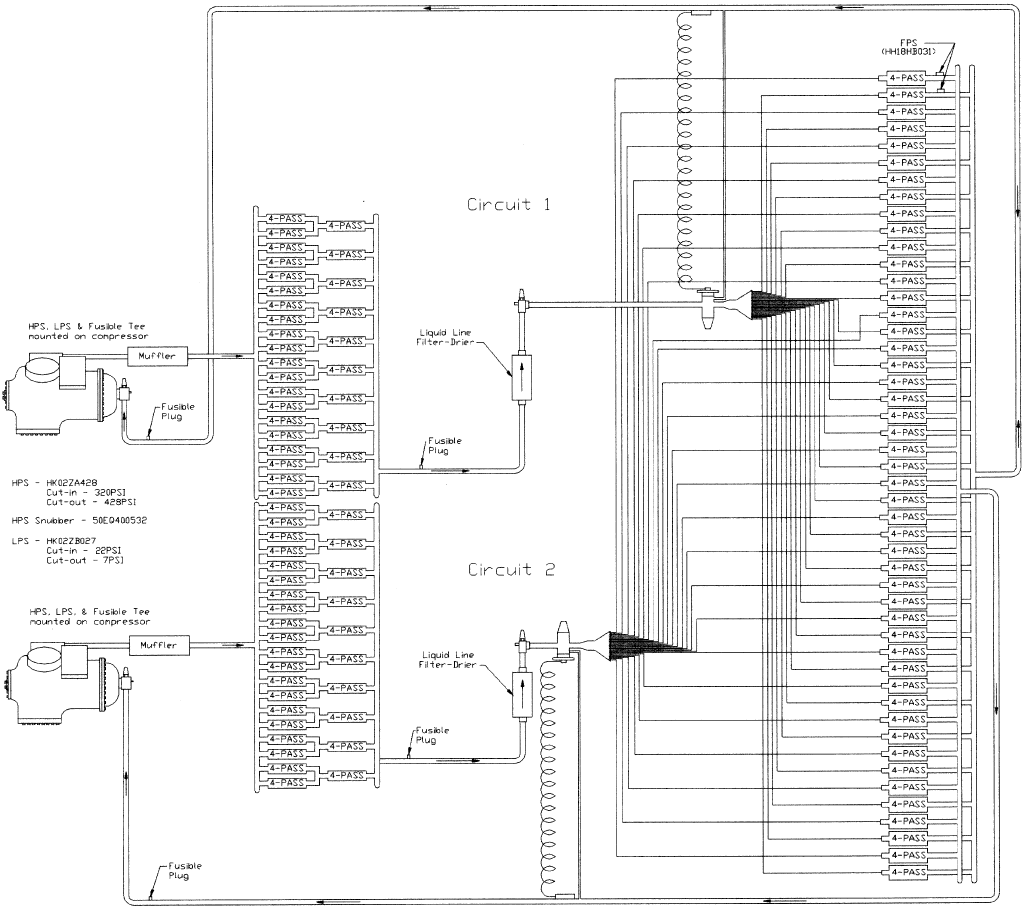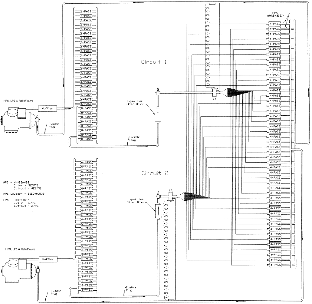 REFRIGERANT DISCHARGE CIRCUIT NO. 1 PSIG CIRCUIT NO. 2 PSIG