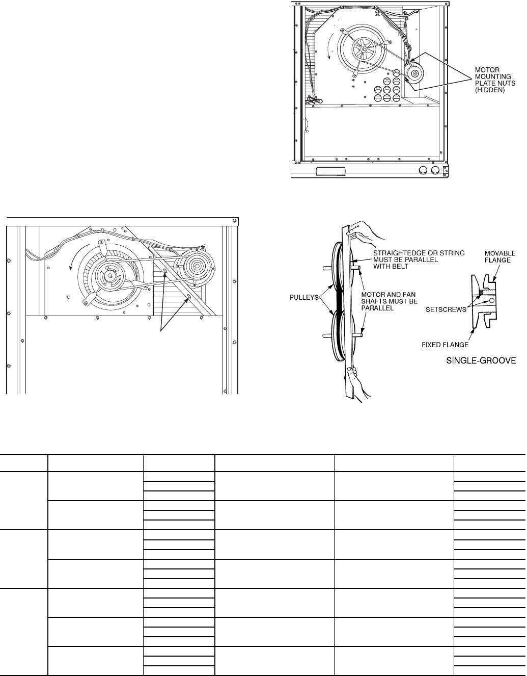 CHECK PULLEY ALIGNMENT AND BELT TENSION PER INSTALLATION INSTRUCTIONS