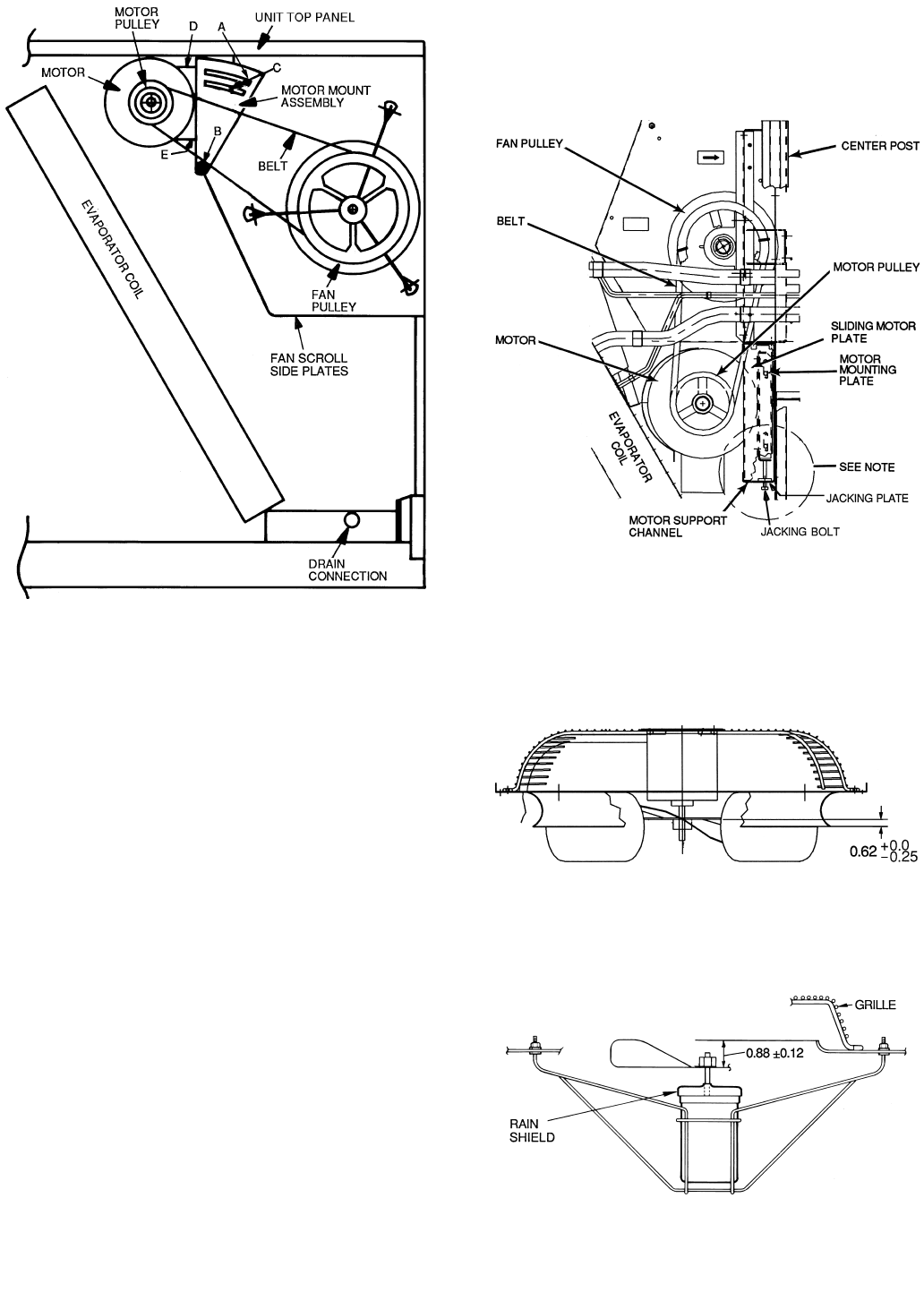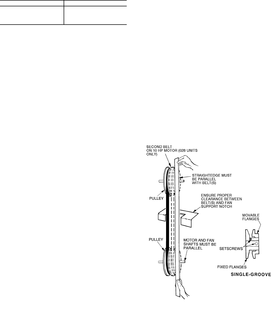 VERIFY THAT FAN SHEAVES ARE ALIGNED AND BELTS ARE PROPERLY TENSIONED
