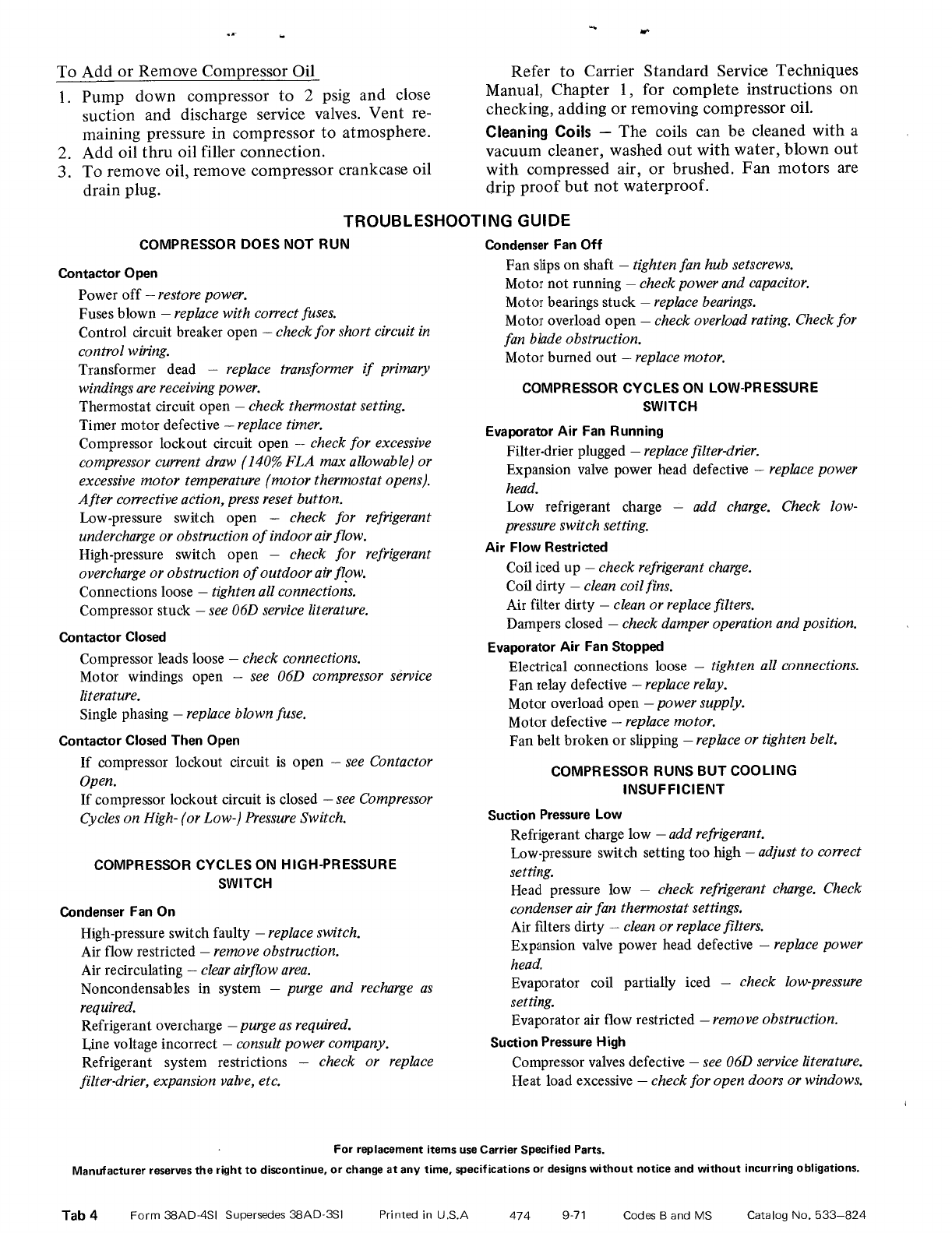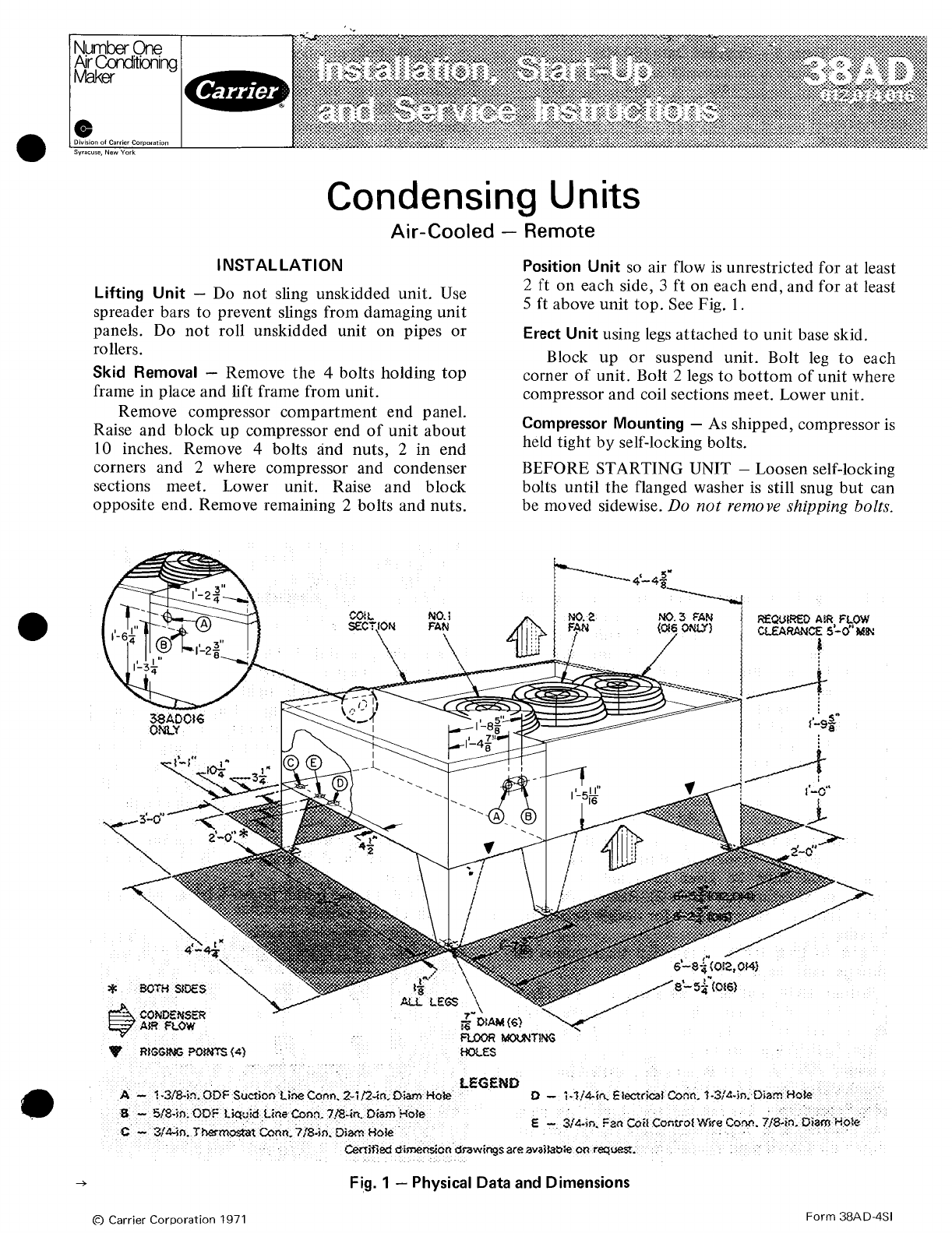 Carrier Air Cooled Condensing Units 38Ad Users Manual