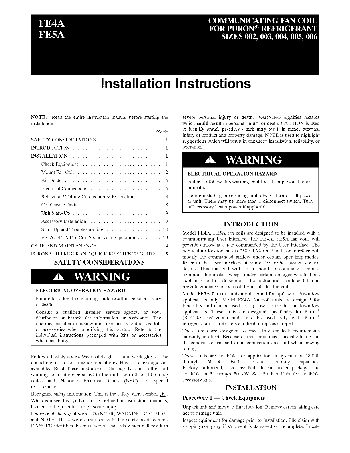 FE4A, FE5A Fan Coil Sequence of Operation ......... 13
