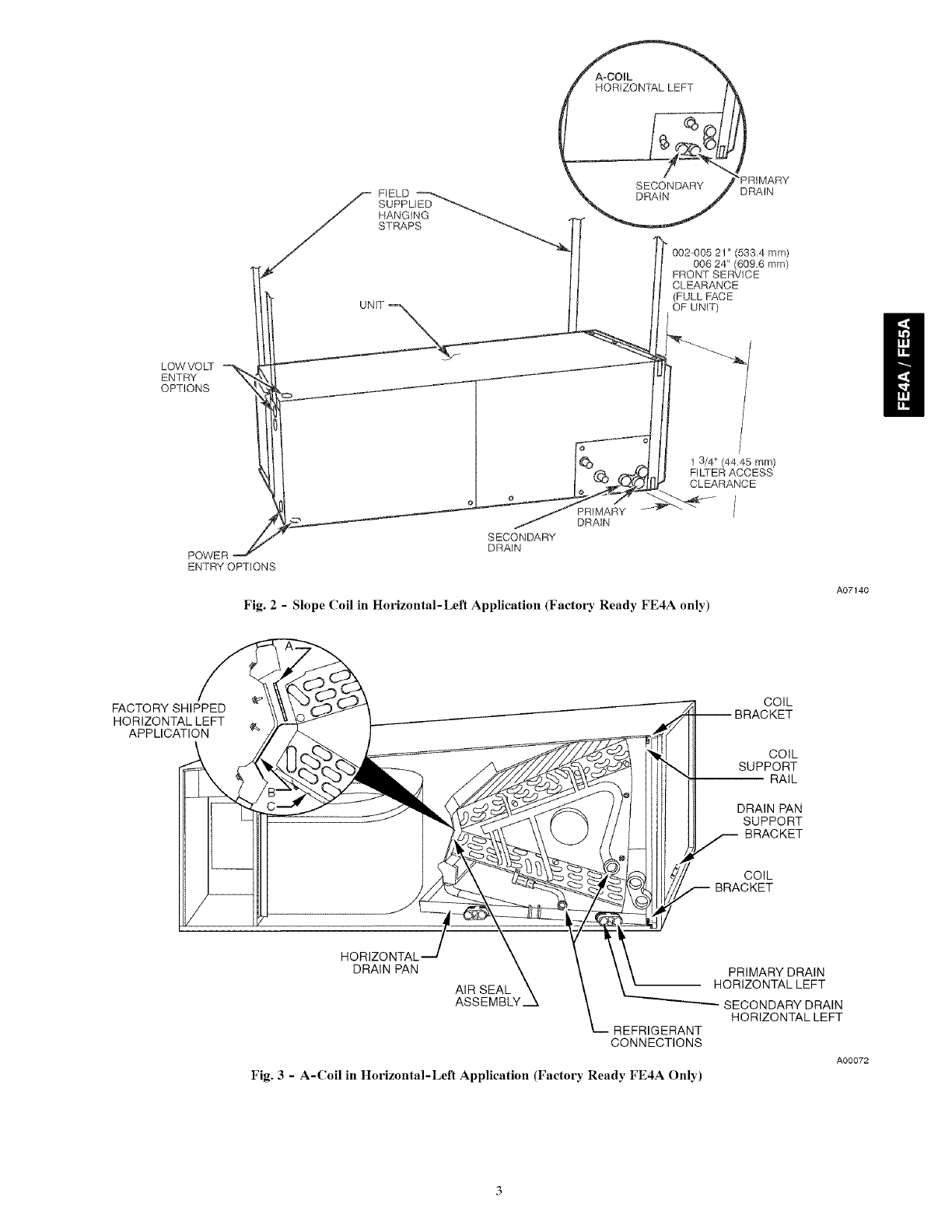 Model FE4A. FE5A fan coils are designed to be installed with a