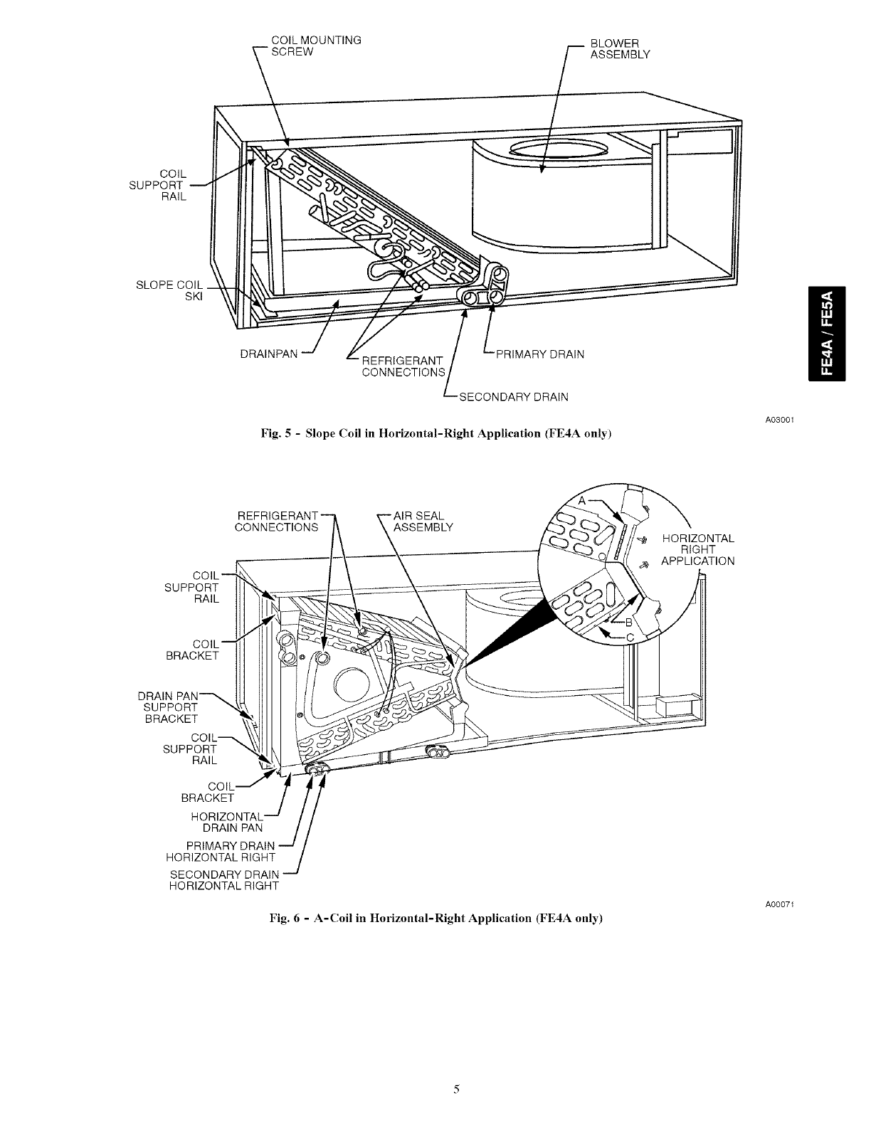Model FE5A fan coil units are designed for upflow or downflow