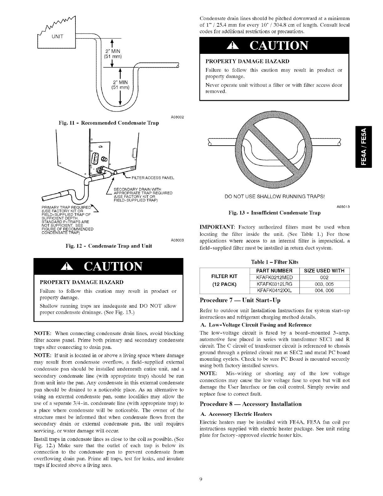 condensate pan to be installed under the entire unit. Some localities