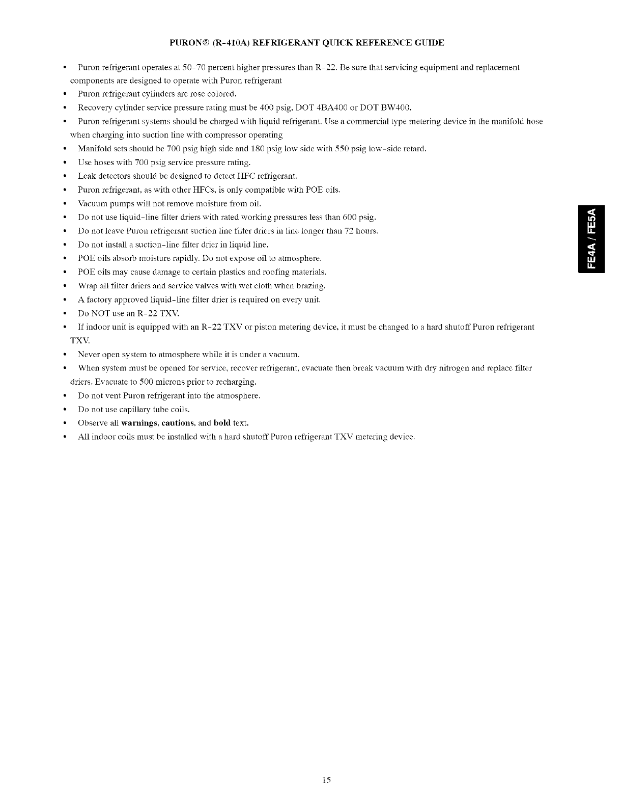 PURON@ REFRIGERANT QUICK REFERENCE GUIDE . 15
