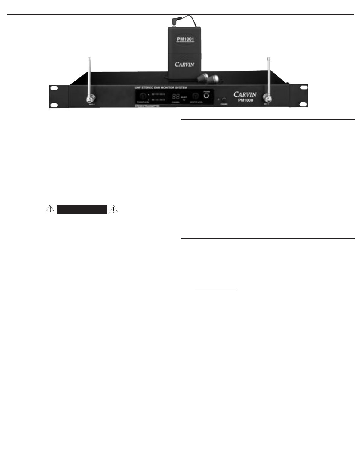 Thank you for purchasing the Carvin PM1000 Wireless Personal In-Ear