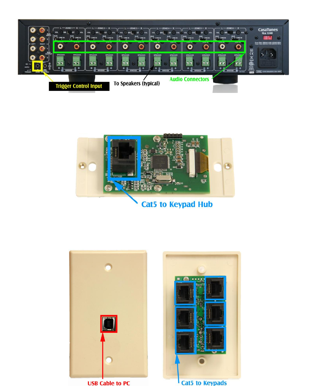 Blue: CAT5, 5e, 6 or higher cable. One per Keypad.