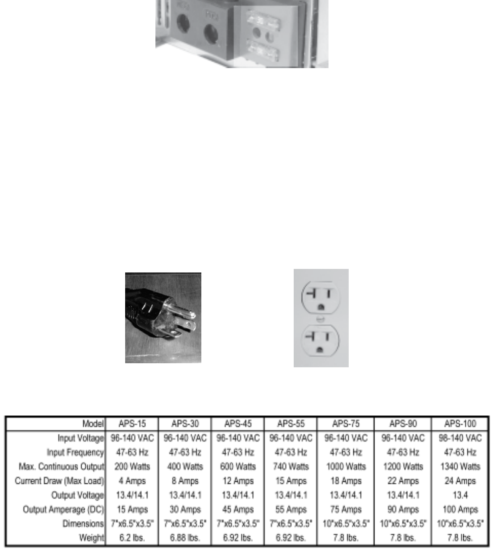 APS-15, 30, 45, 55, 90 and 100 feature standard 3 prong grounded AC power