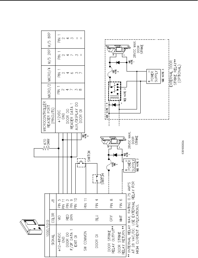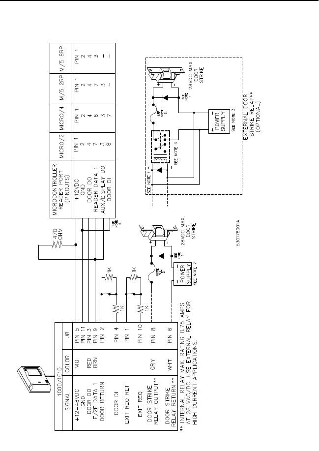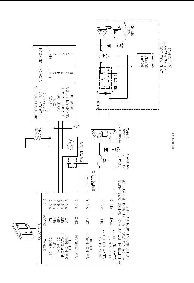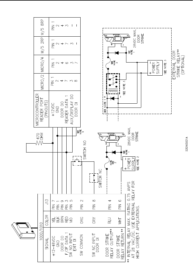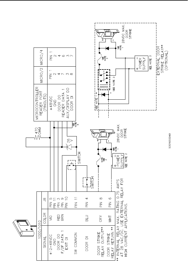 Reader to Door Strike and Microcontroller (Connection to