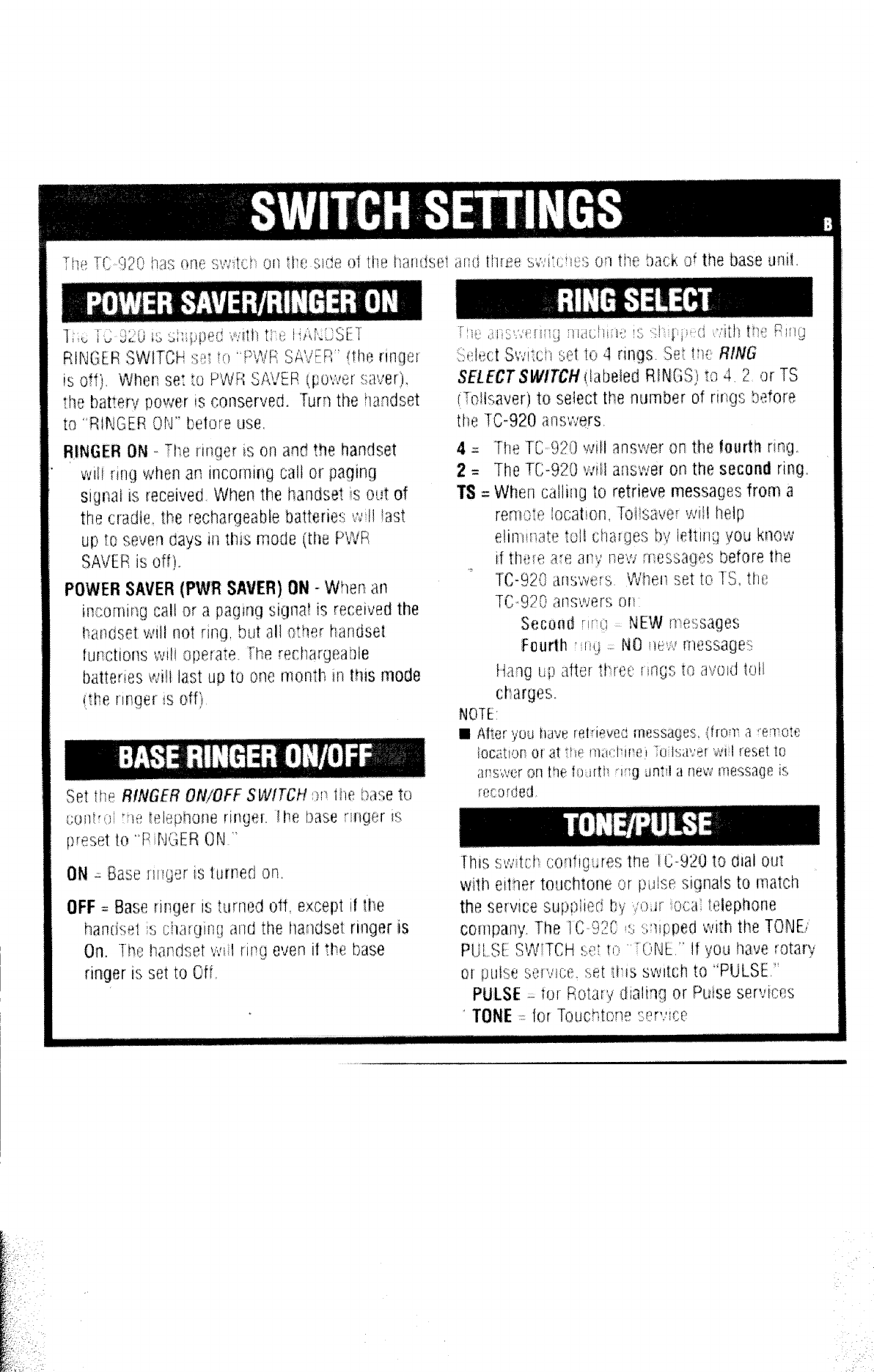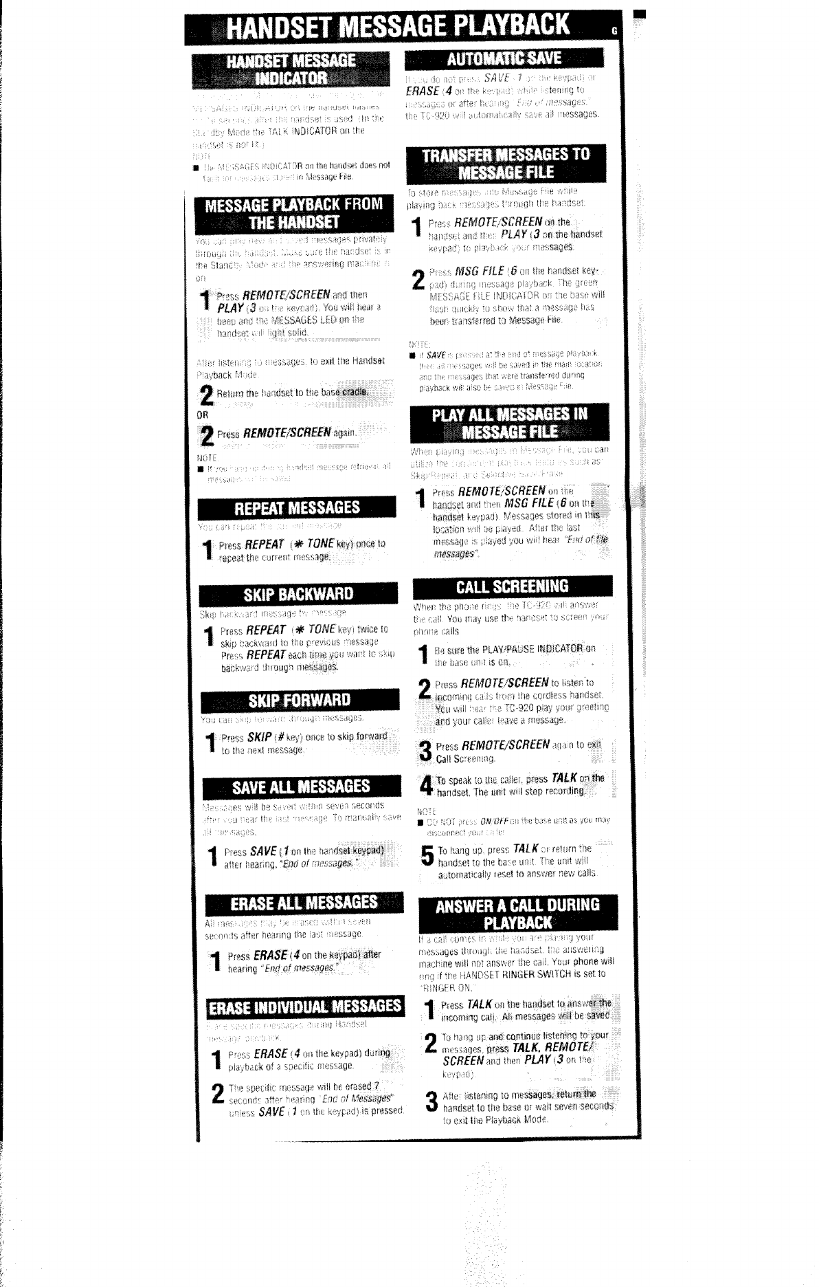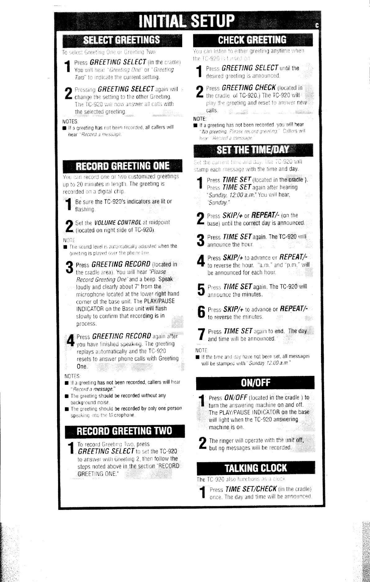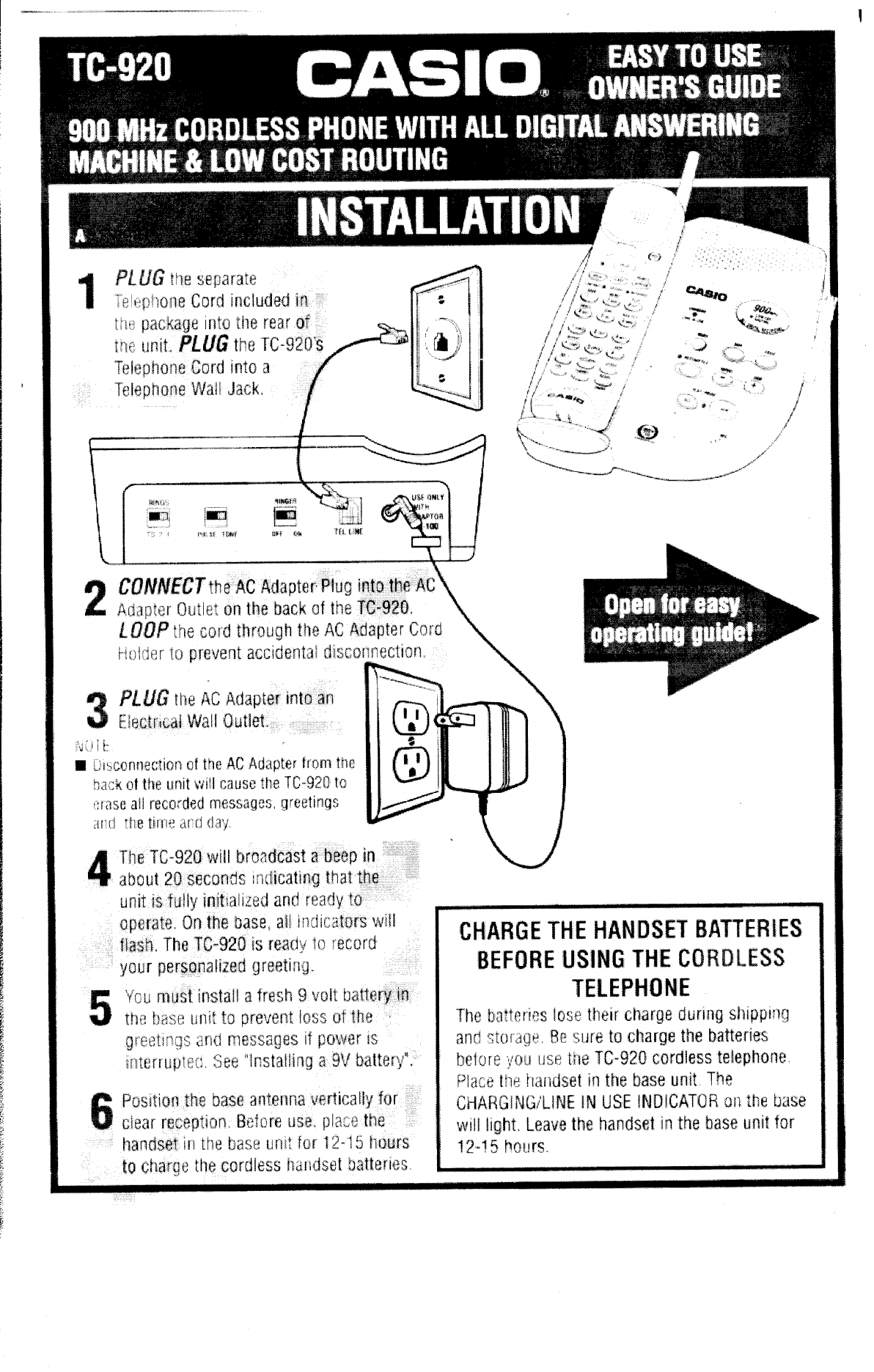 Casio Communication TC-1475 900MHz Cordless Phone w/Digital Answering Machine User Manual