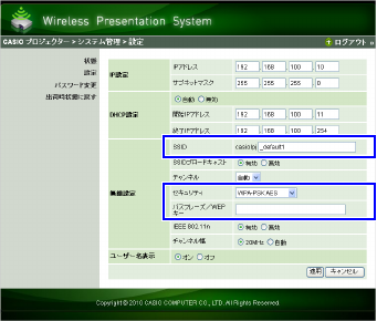 システム管理画面を使ってプロジェクターに新規のSSIDを割