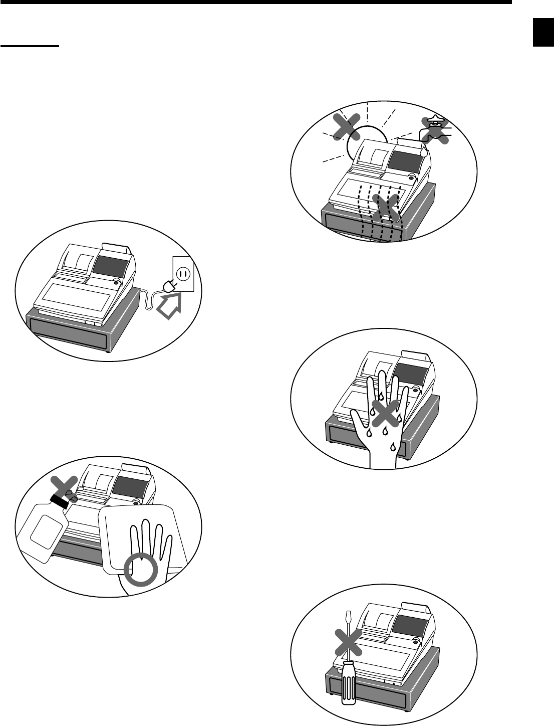 Bedienen Sie niemals die Registrierkasse mit nassen