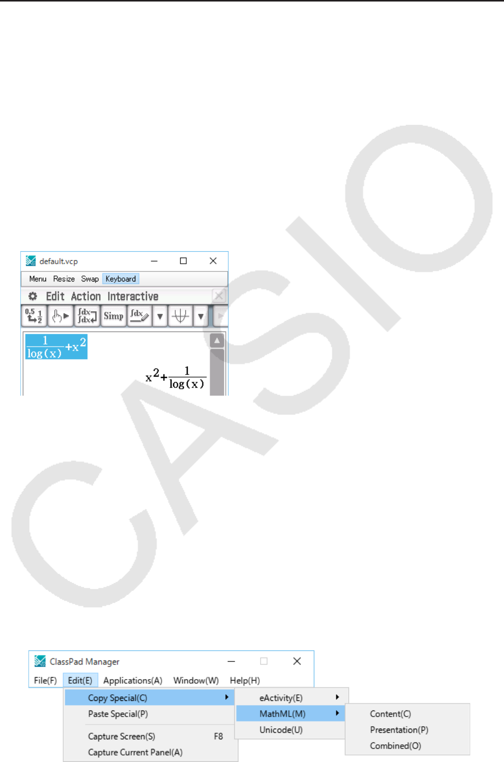 · Copiado y pegado de datos (texto, valores, expresiones, etc.) entre el ClassPad Manager y