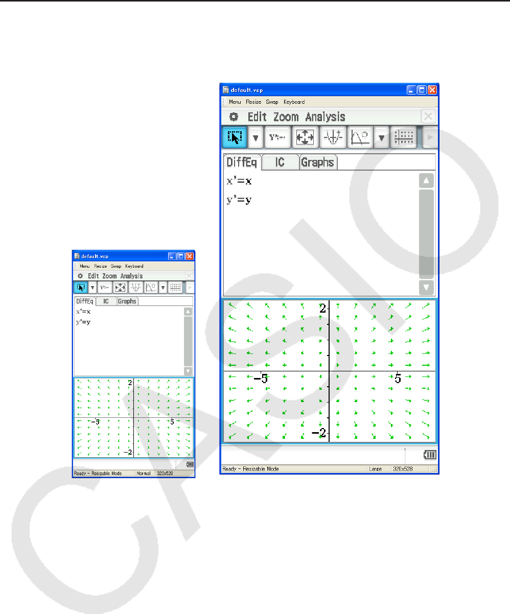 Im Festgröße-Modus kann der Displayteil (einschließlich Icon-Panel) des ClassPads in einem als