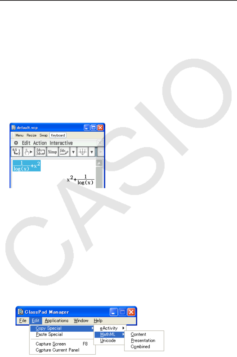 · Kopieren und Einfügen von Daten (Text, Werte, Ausdrücke usw.) zwischen ClassPad