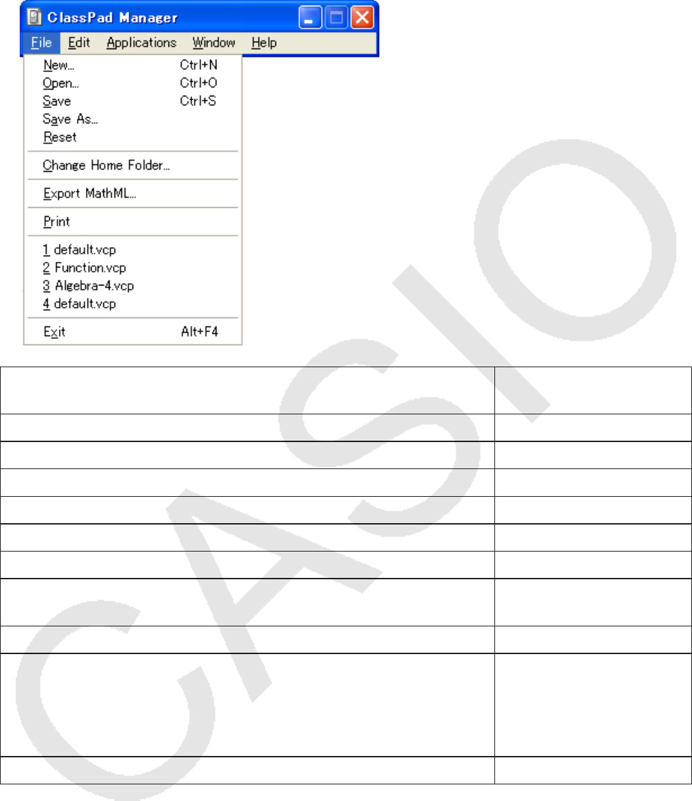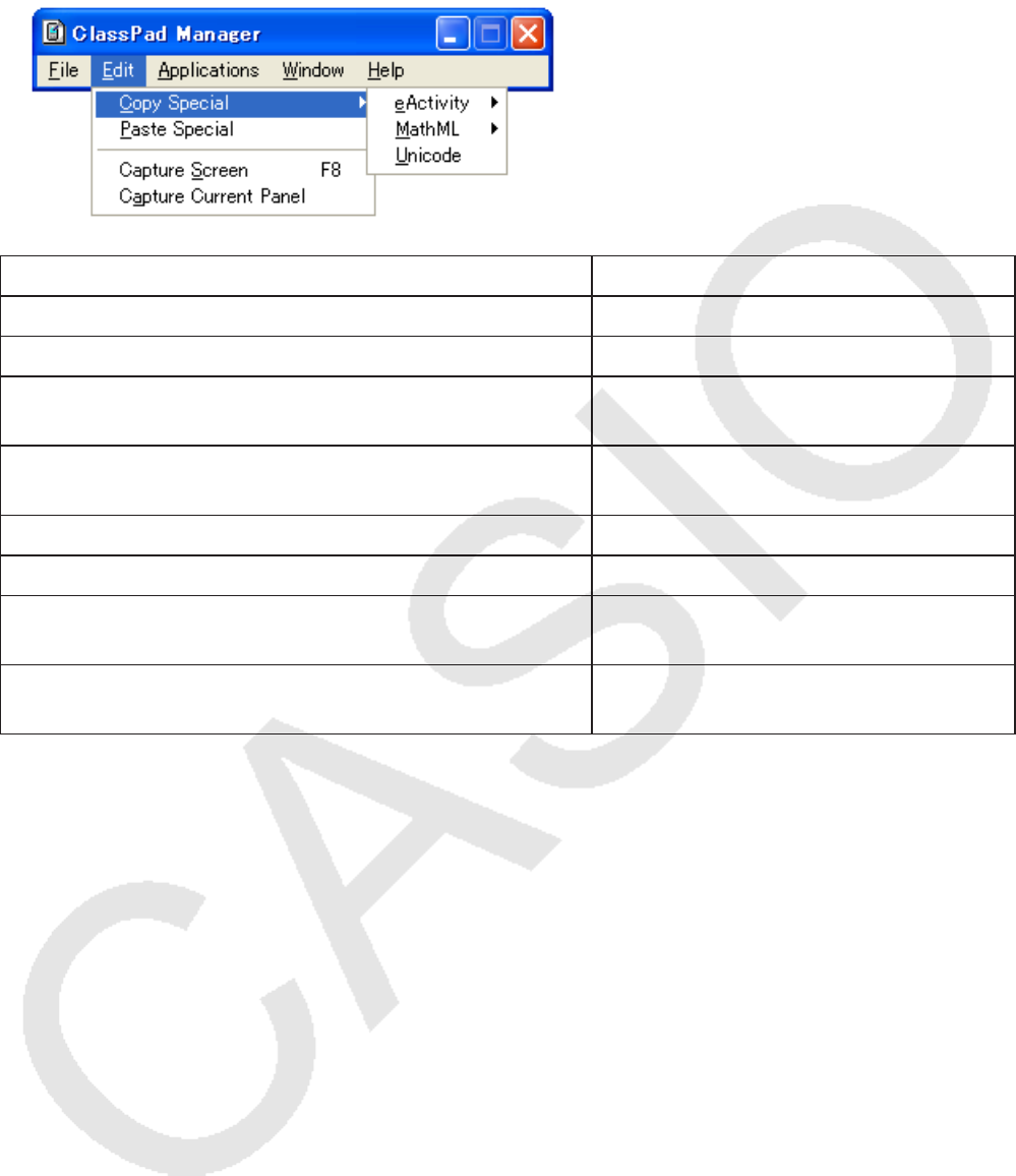 • ClassPad Manager besitzt die folgenden Fähigkeiten.