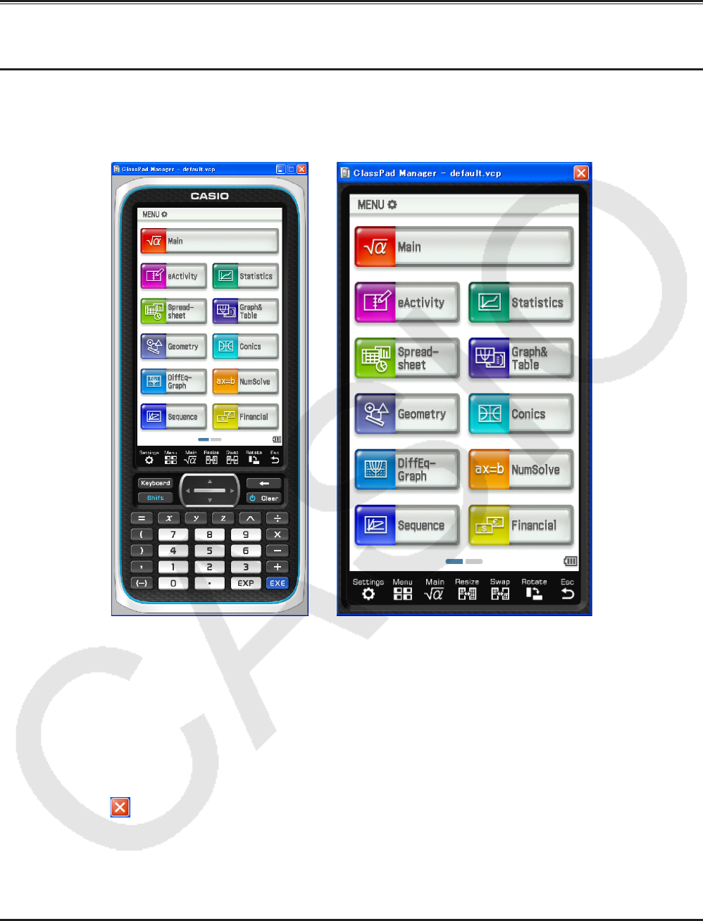 • Näheres zur Bedienung des On-Screen-ClassPad-Emulators finden Sie in der