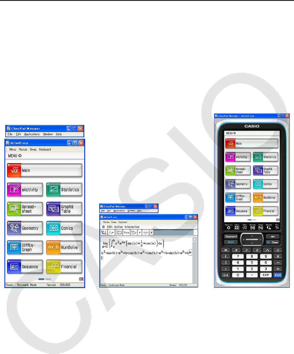 zurück. Beachten Sie jedoch, dass der Berechnungsbereich des ClassPad Manager mit dem des