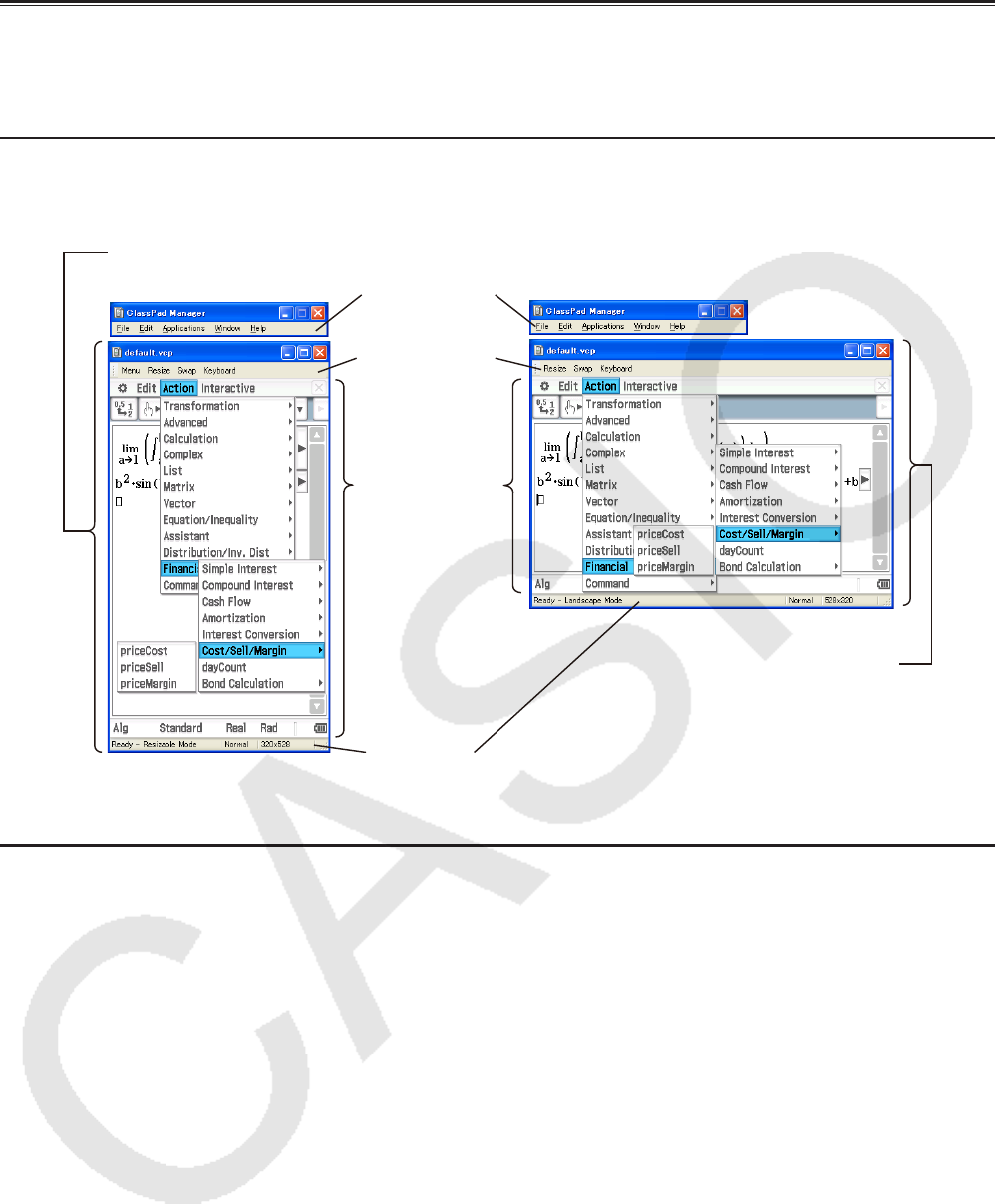 Benutzen des ClassPad Manager im Anpassmodus/Querformatmodus ........G-14