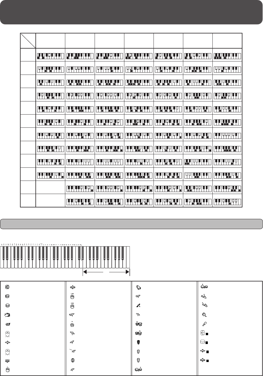 ノート・オン情報は本機の全体の音量の値が9∼2の場合はV (ベロシティ) =100