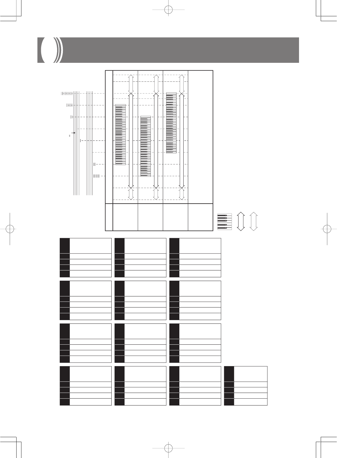 :由于伴奏鍵盤範圍的限制﹐標有星號的和弦不能在多指和弦模式中使用。