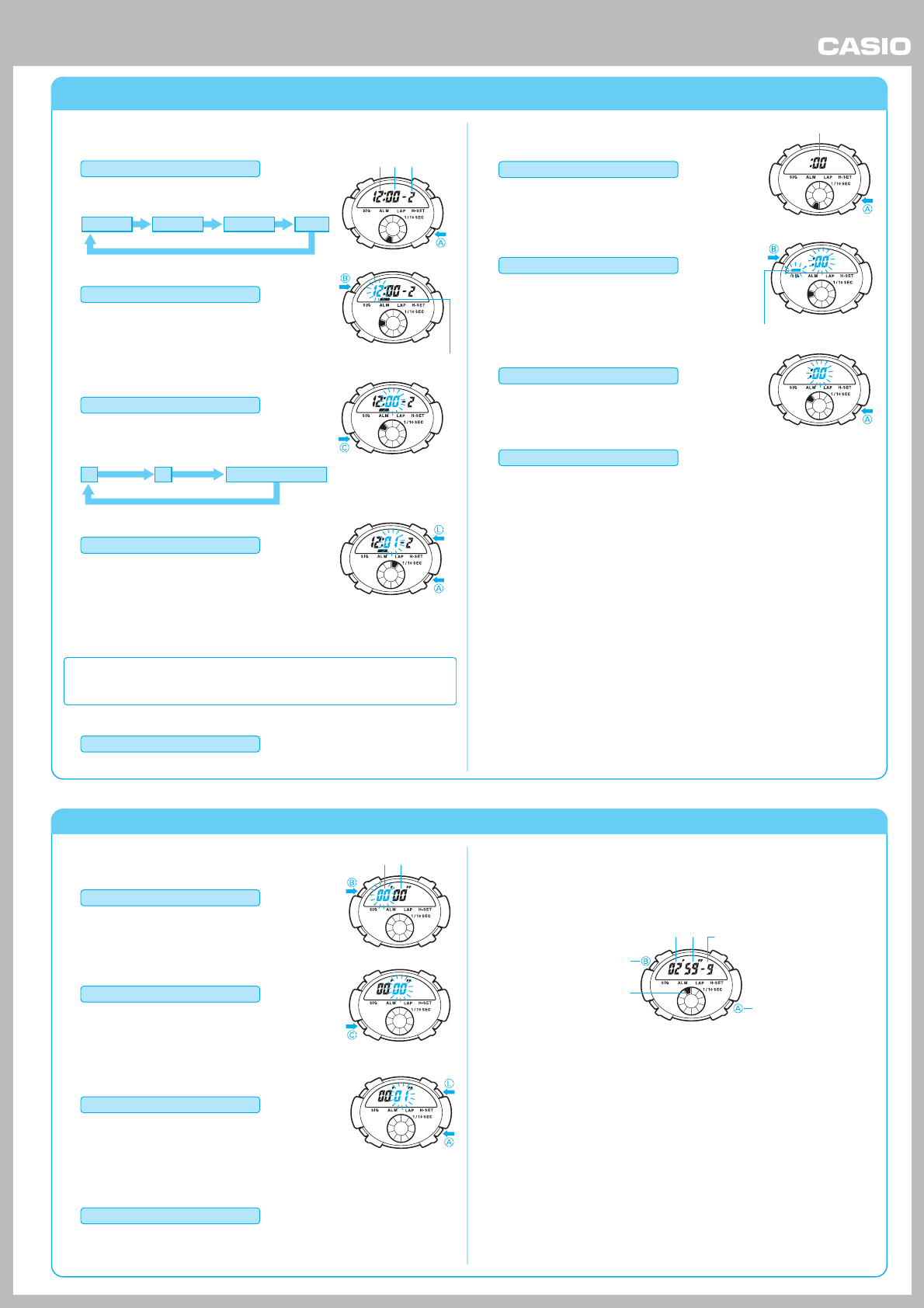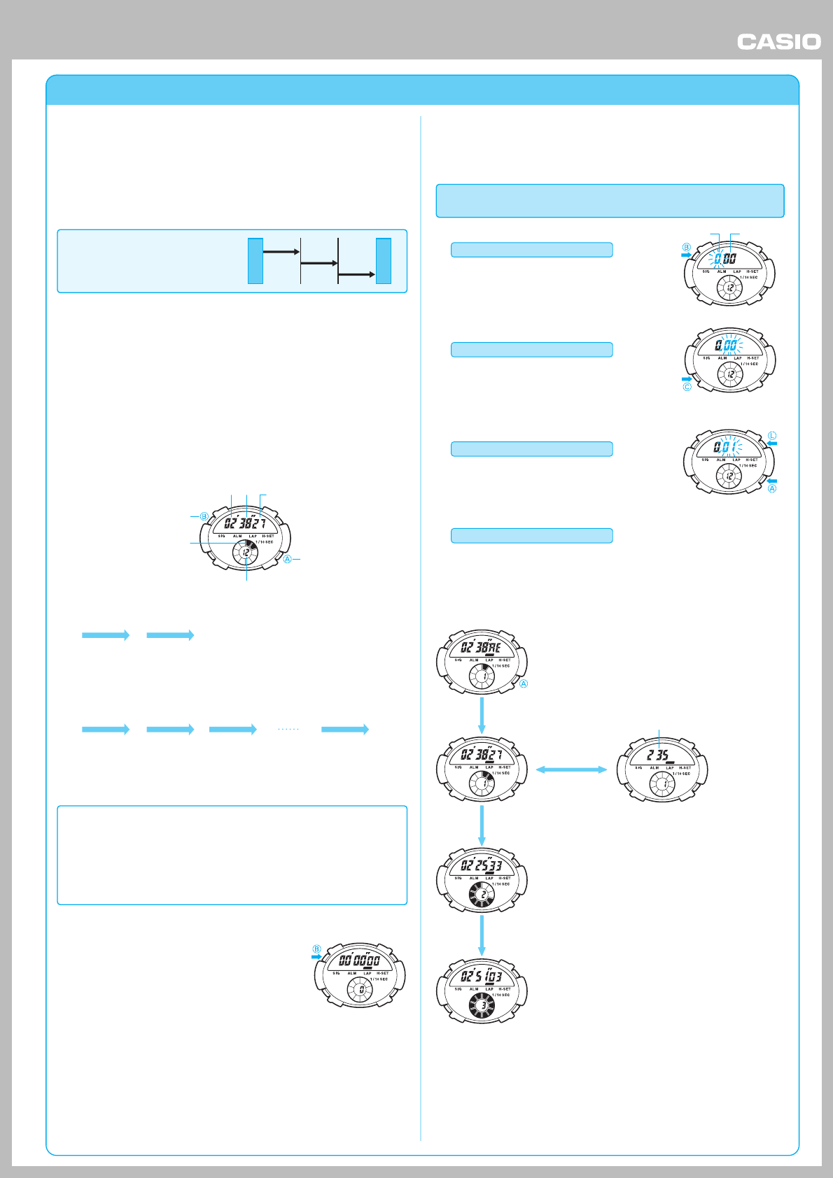 時刻モードとアラームモードでは1秒に、ストップ ウオッチ モ ードとリコール