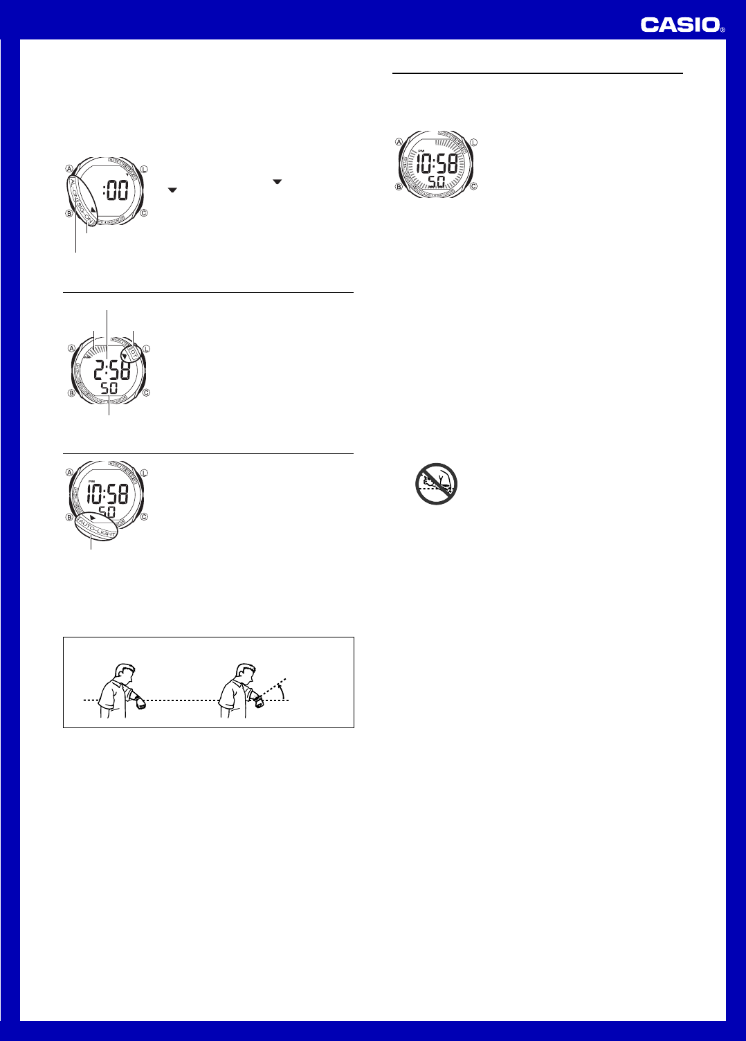 •The backlight turns off in about two seconds, even if you keep the watch pointed