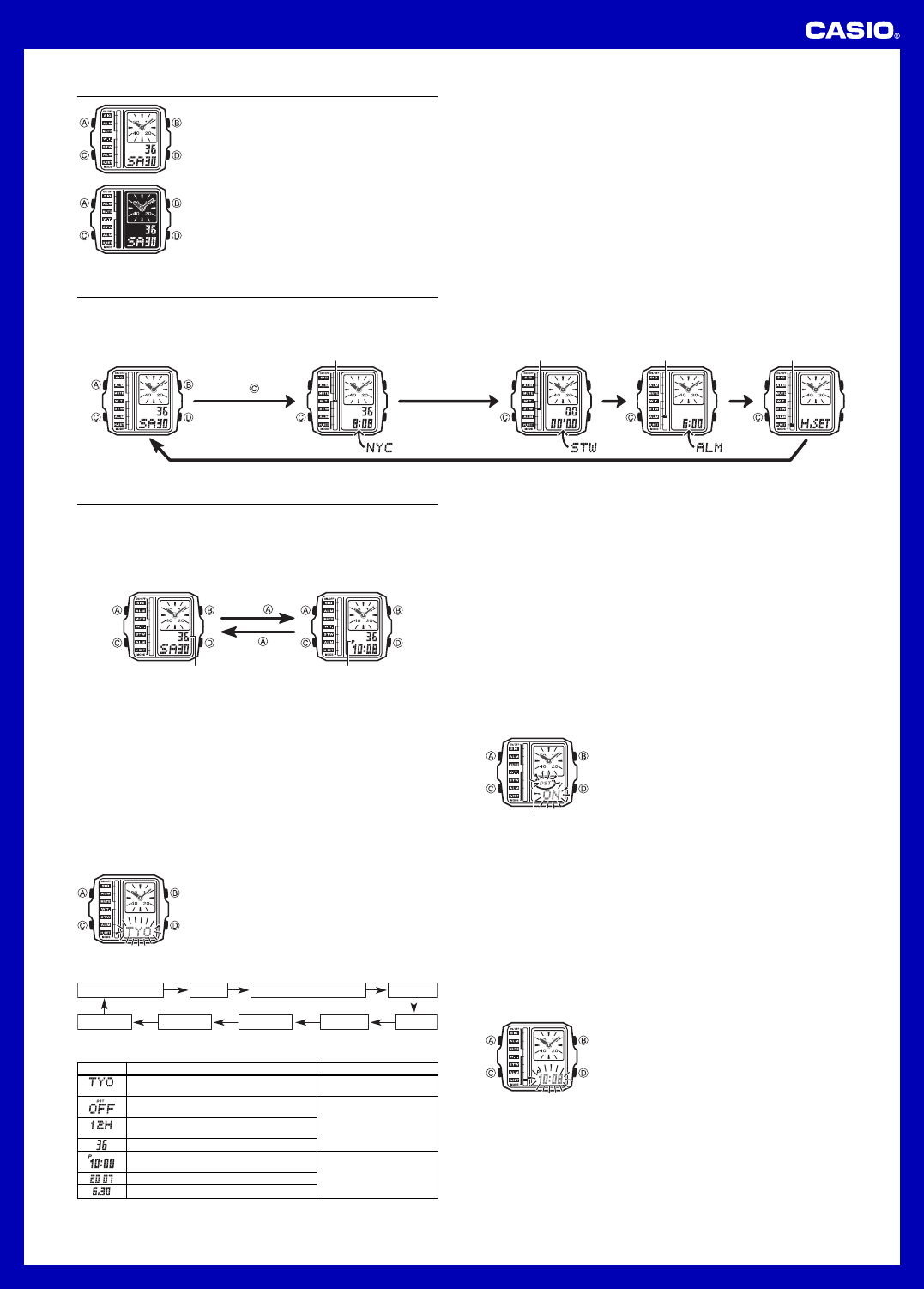 Timekeeping Mode World Time Mode Stopwatch Mode Alarm Mode Hand Setting Mode