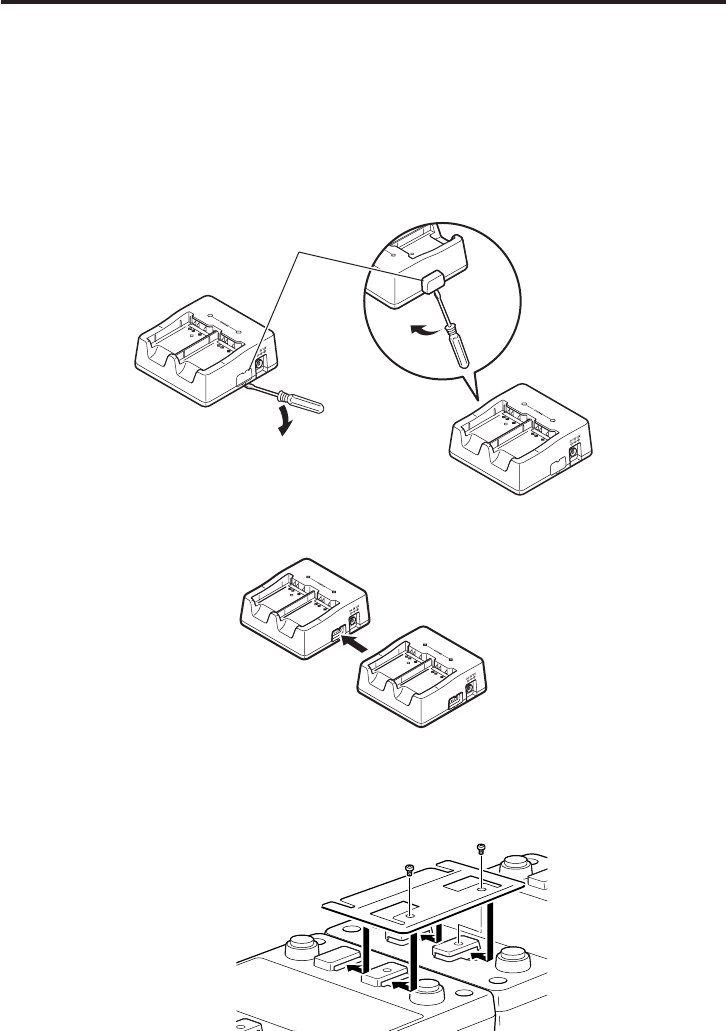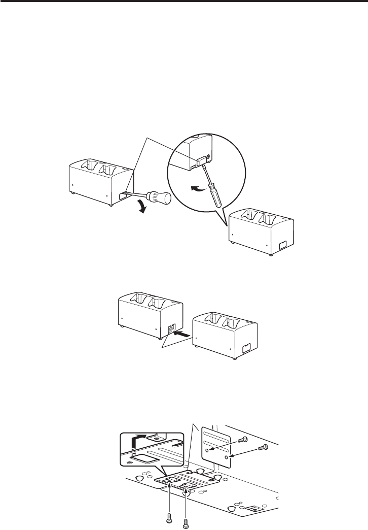 3. Turn over the connected Dual Battery Chargers and attach a connection bracket,