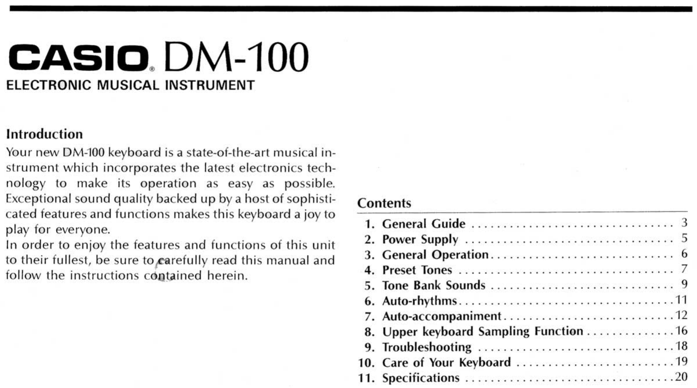 Casio Electronic Keyboard Dm 100 Users Manual Owner's