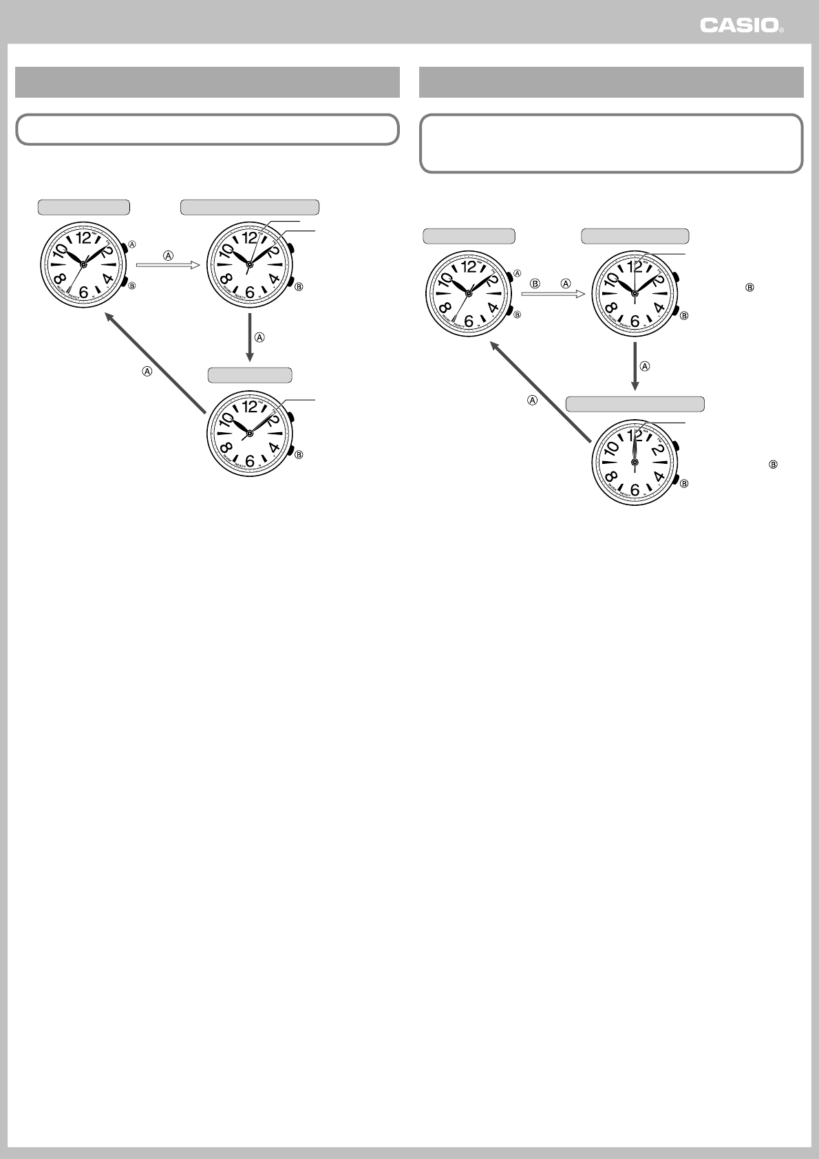 • During normal timekeeping, hold down the B button and then the A button, keeping both buttons