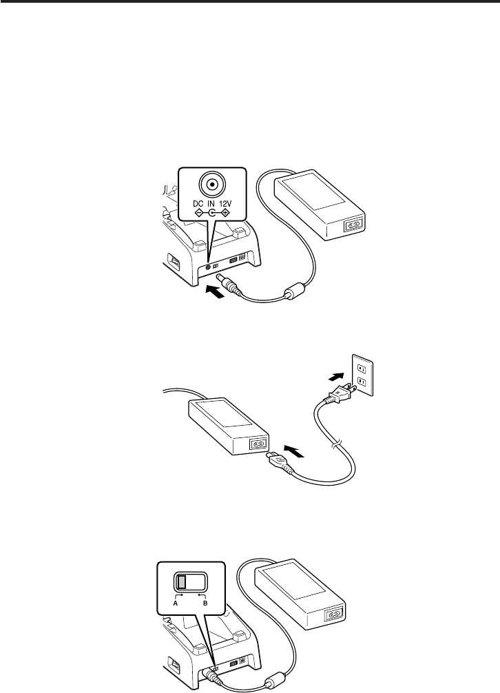 1. Plug the cord from the AC adaptor into the AC adaptor jack of the Dual Battery