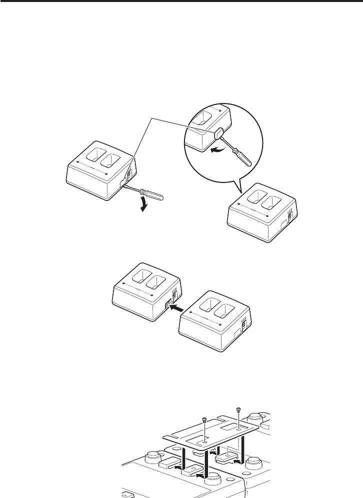 3. Turn over the connected Dual Battery Chargers and attach a connection bracket,