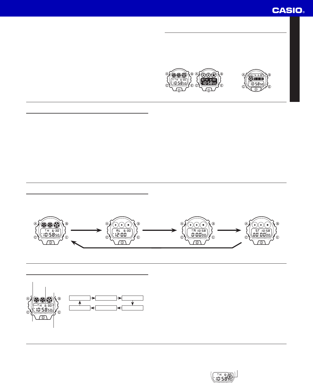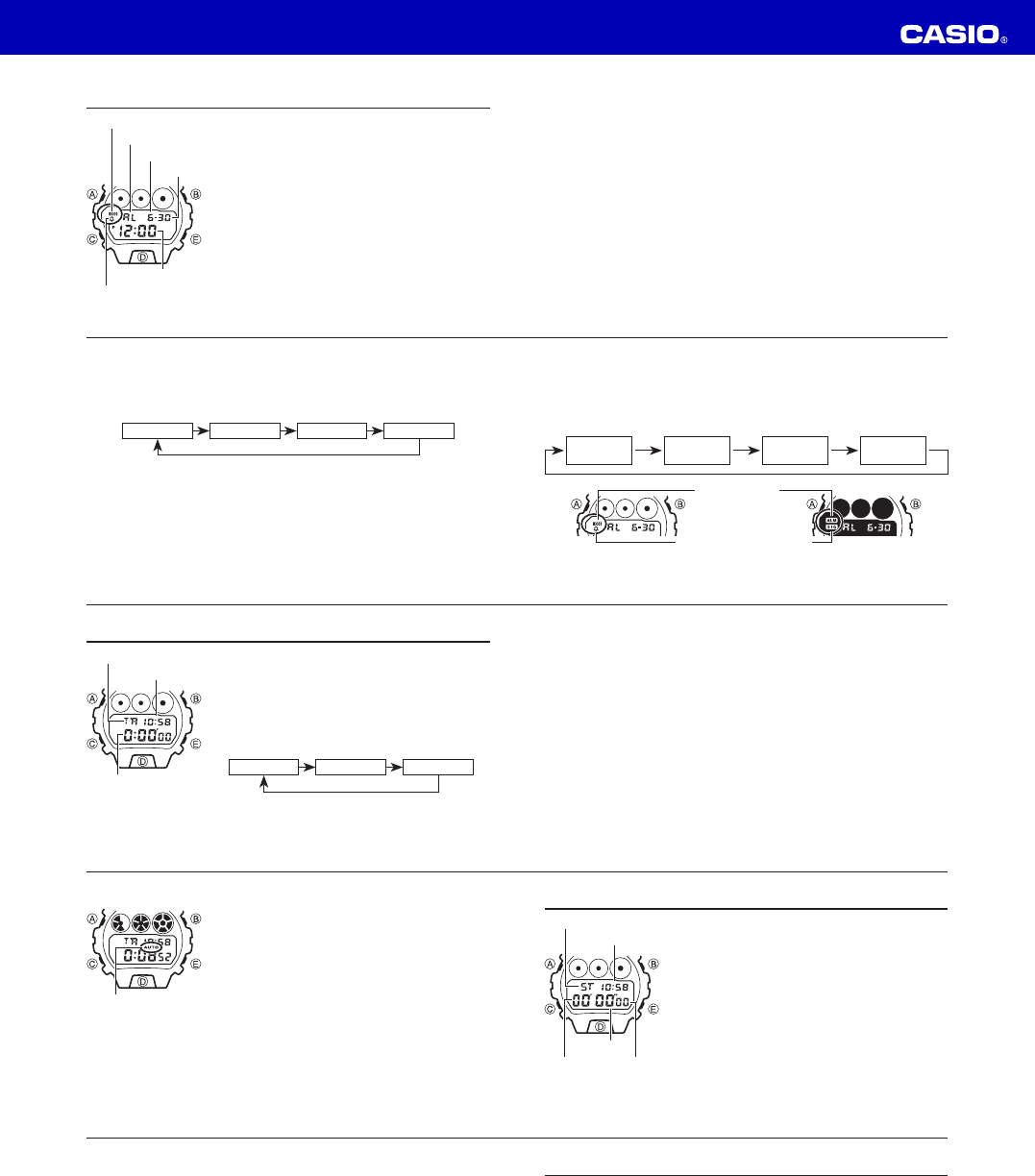 whenever alarm (page E-10), countdown timer or hourly time signal is sounding.