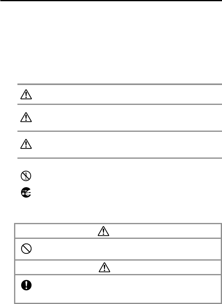 The following are the meanings of the markings and symbols used in these Safety