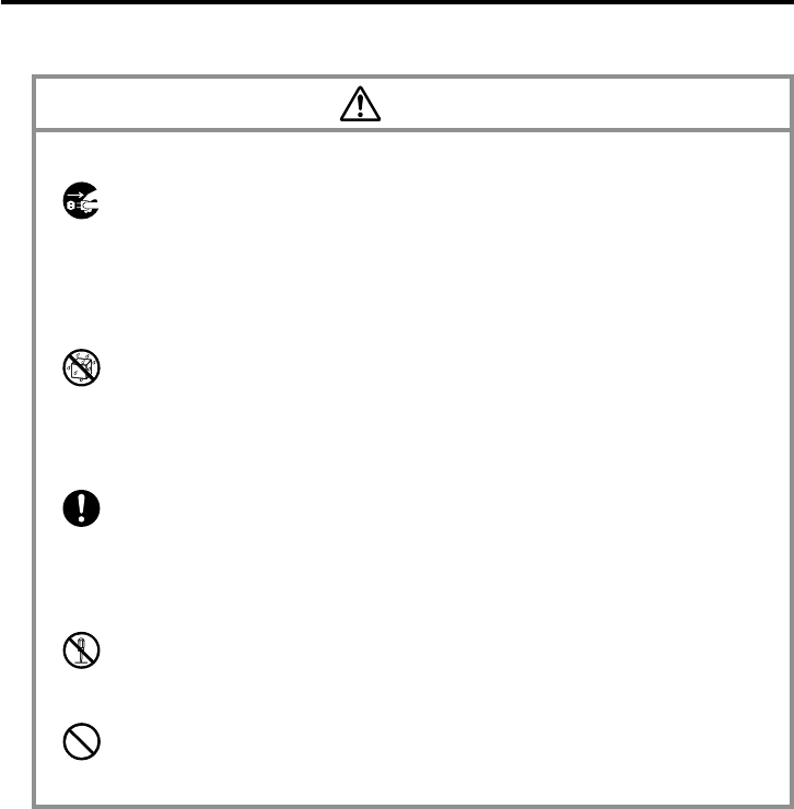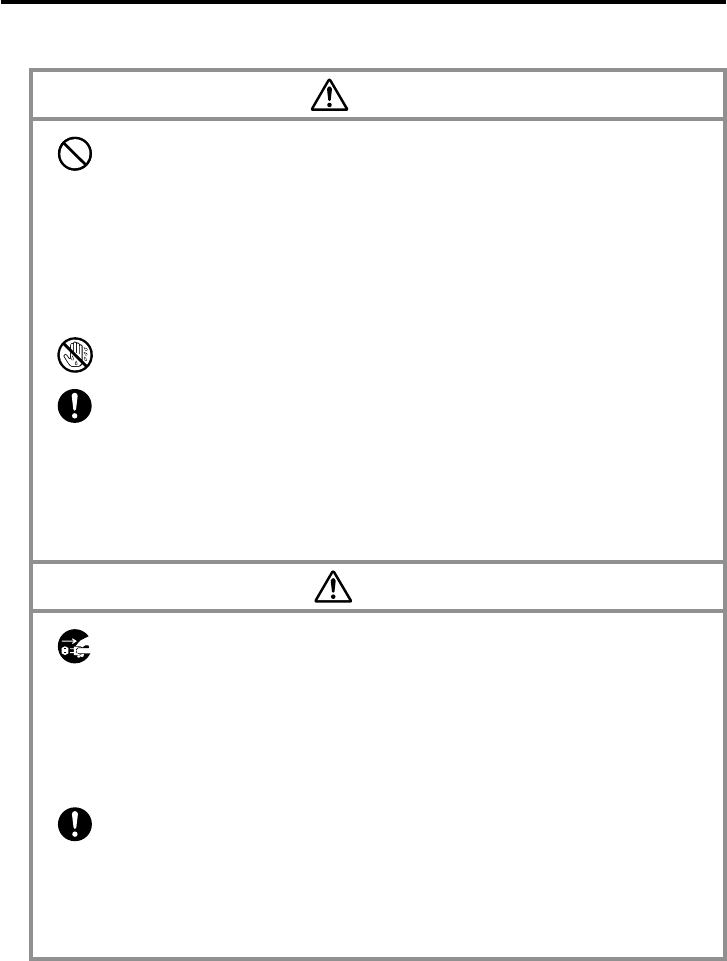 the danger of fire and electrical shock. Immediately turn off power, unplug